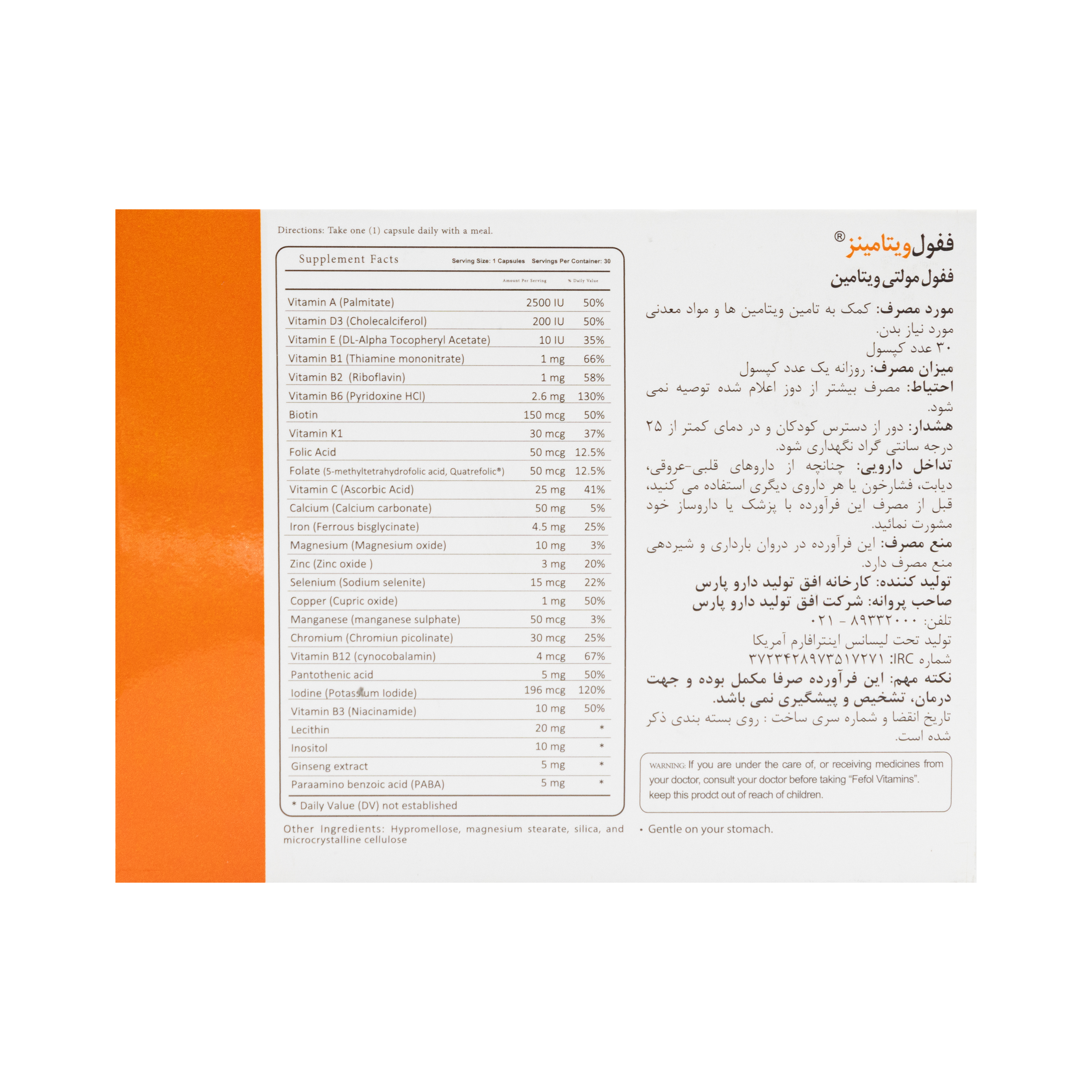 کپسول مولتی ویتامین ففول ویتامینز اینترافارم