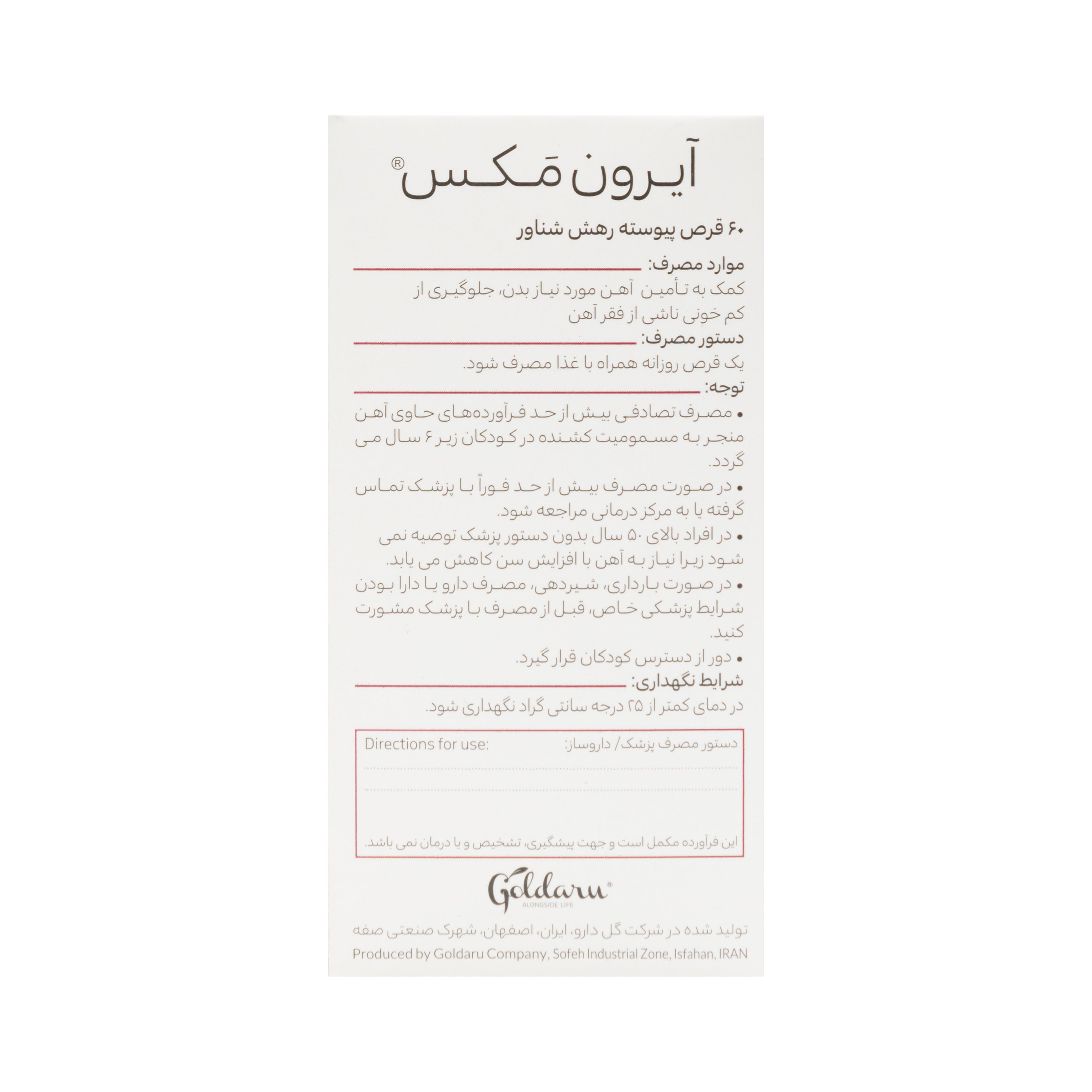 - درصورت بارداری یا شیردهی، قبل از مصرف قرص آیرون مکس با پزشک مشورت شود.