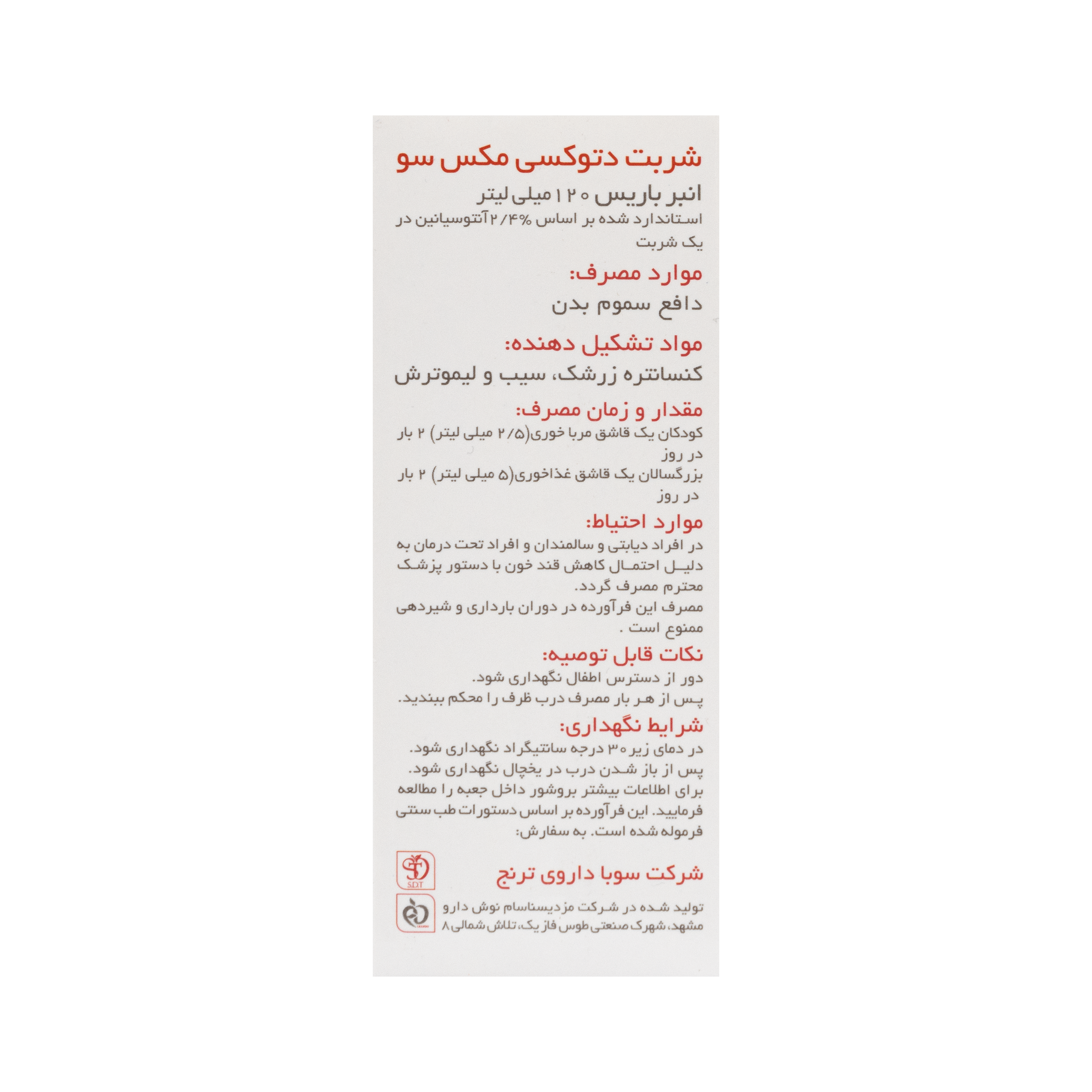 شربت دتوکسی مکس سو (انبر باریس) سوبا داروی ترنج