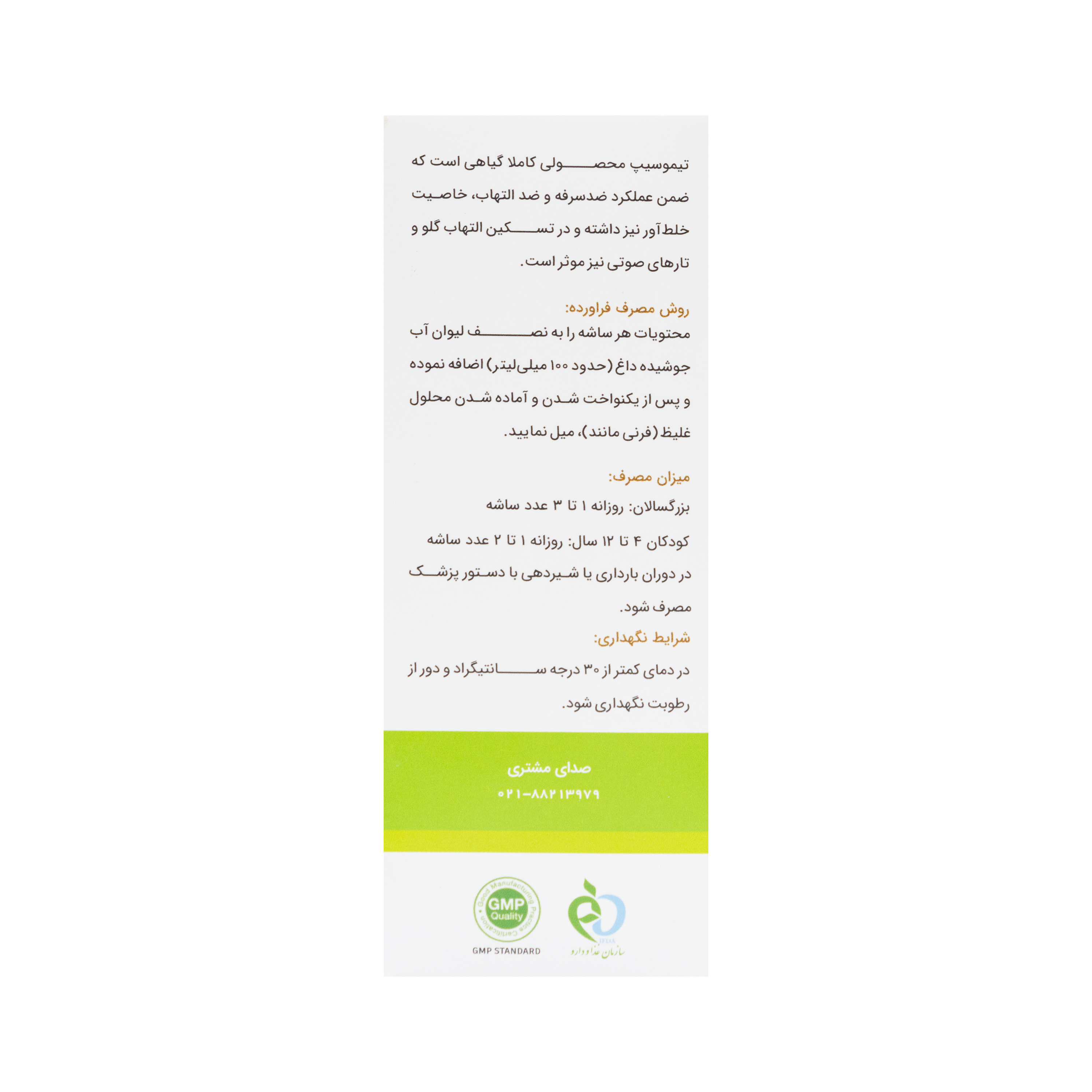 هر ساشه 10 گرمی حاوی: