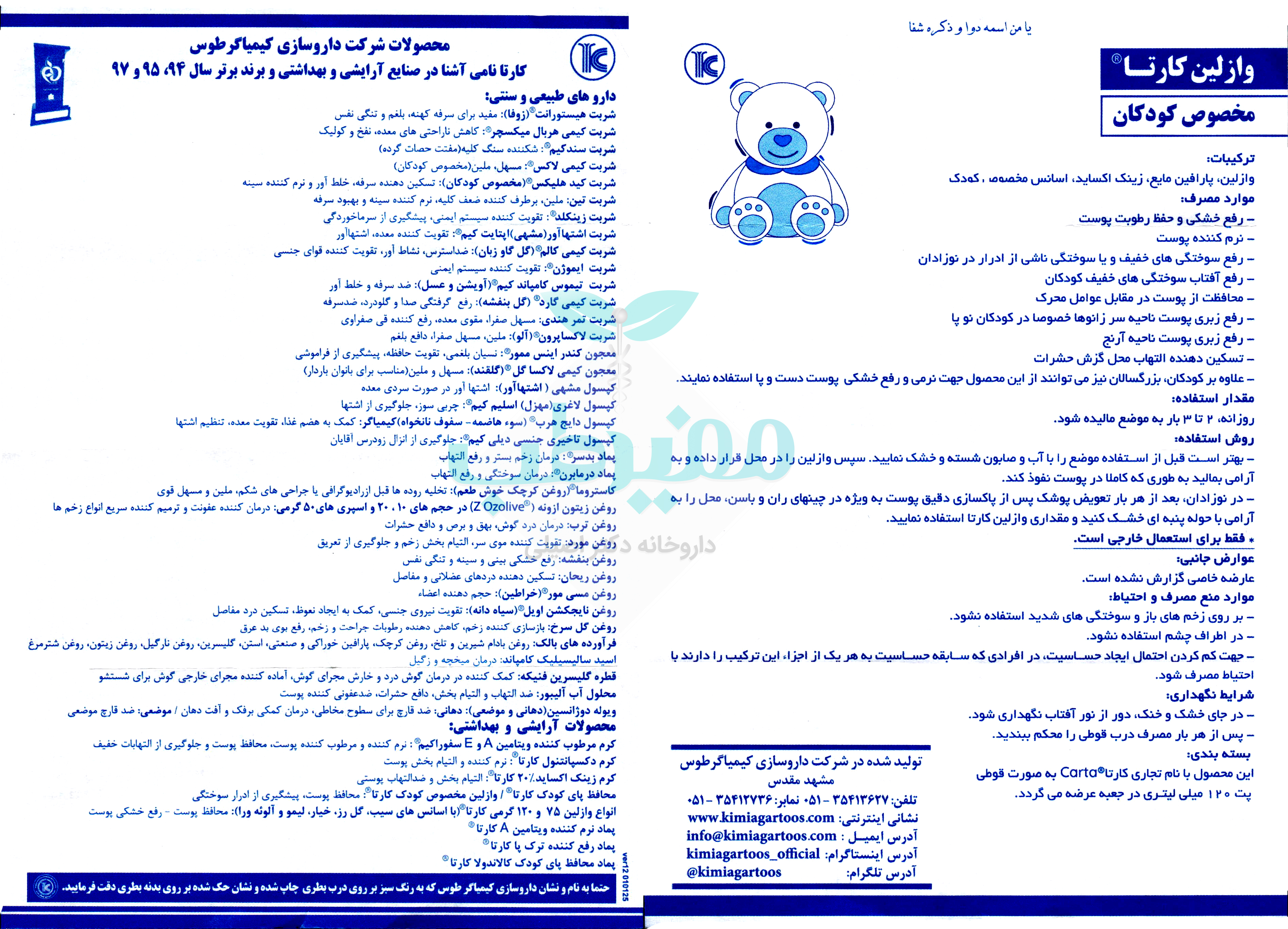 وازلین کارتا مخصوص کودکان تیوپی کیمیاگر توس
