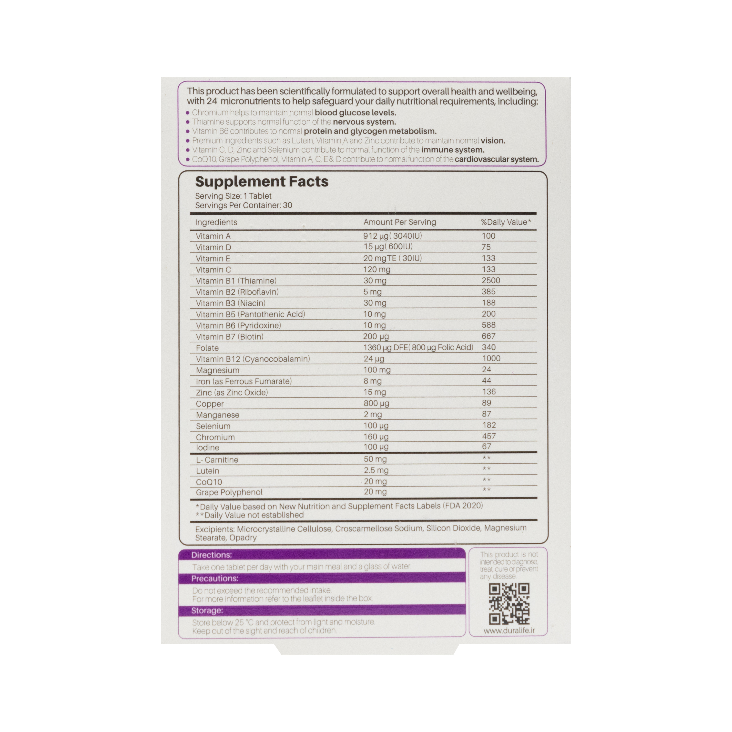 Serving Size: 1 Tablet Servings Per Container: 30 |