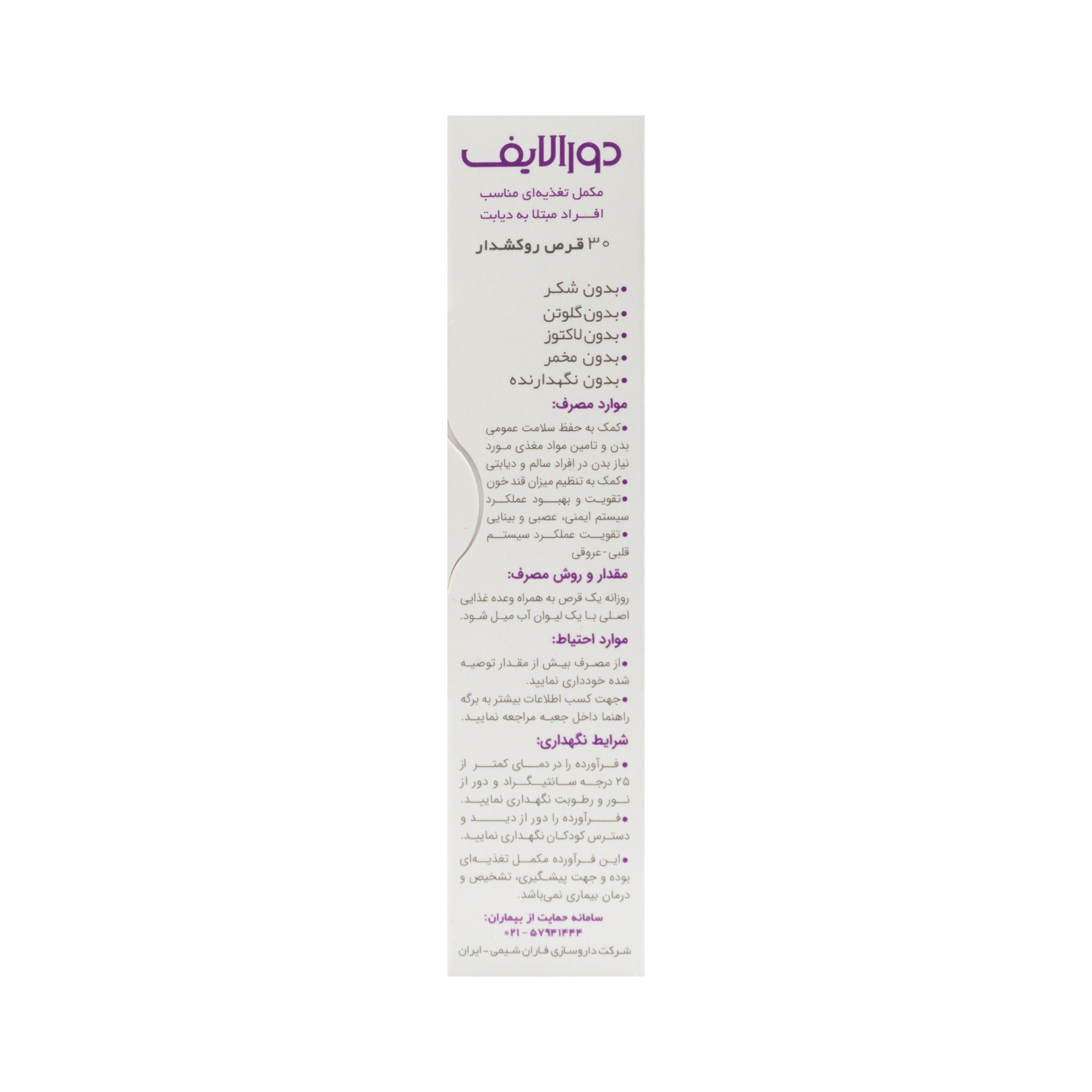 قرص روکشدار دورالایف دیابت فاران شیمی