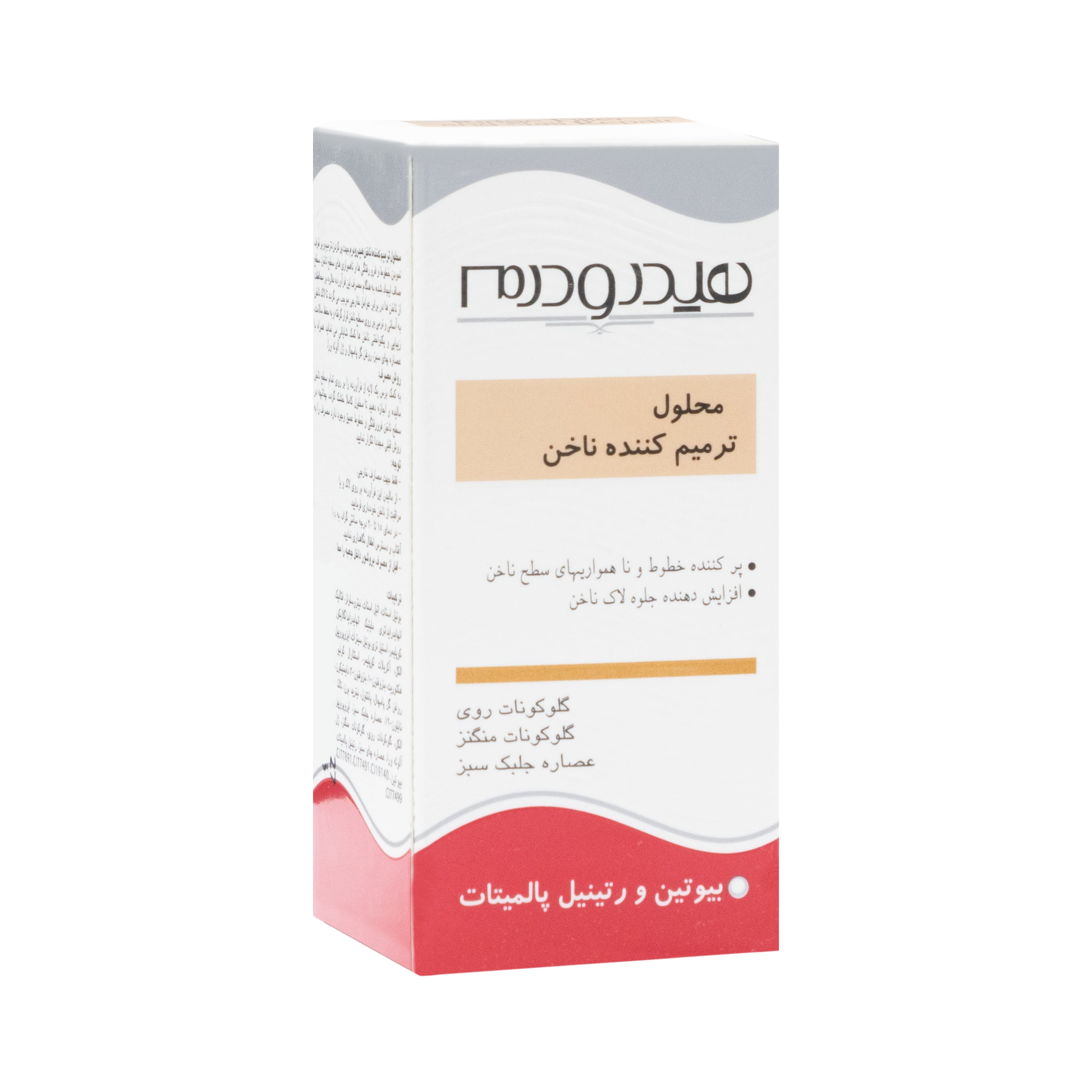 بیوتن به کار رفته در تهیه محلول ترمیم کننده ناخن هیدرودرم با افزایش ضخامت ناخن از نازک شدن، سستی و شکنندگی آن جلوگیری کرده و نیترید برن، دیگر ترکیب موجود در این محصول، باعث پر شدن خطوط و نا همواری های سطح پوست می شود. شما می توانید از این محلول به تنهایی استفاده کرده و یا آن را در زیر لاک ناخن مصرف نمایید.