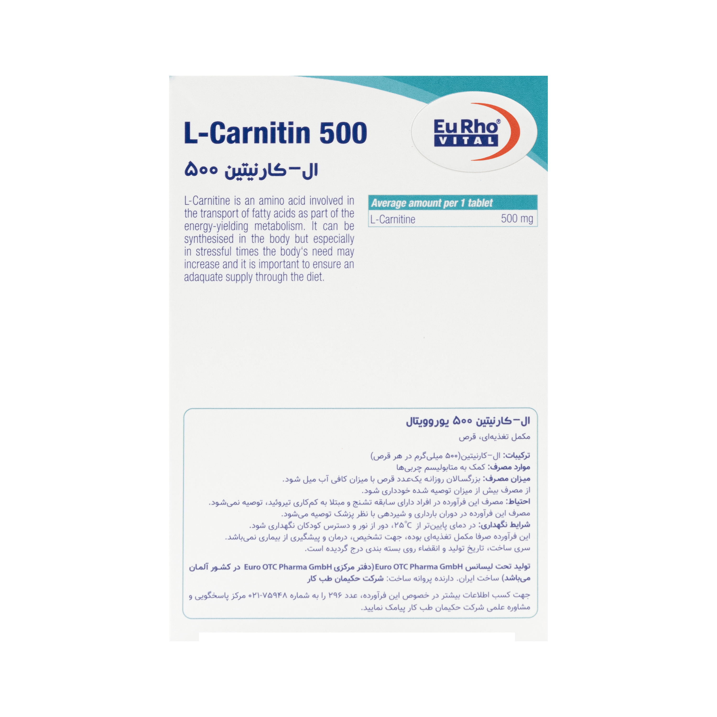 قرص ال کارنیتین 500 میلی گرم یورو ویتال