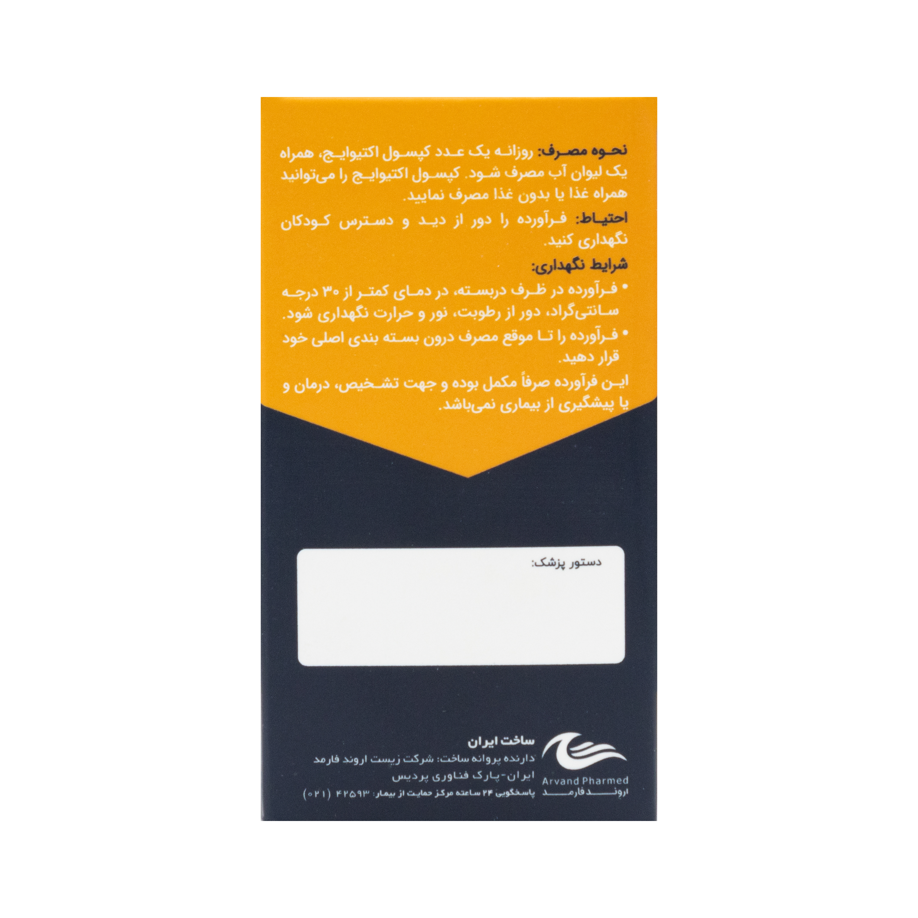 شما میتوانید قبل از مصرف این کپسول با پزشک یا داروساز مشورت کرده و مطابق با نسخه تجویزی عمل کنید. البته کپسول اکتیوایج بدون نسخه پزشک نیز از داروخانهها قابل تهیه است.