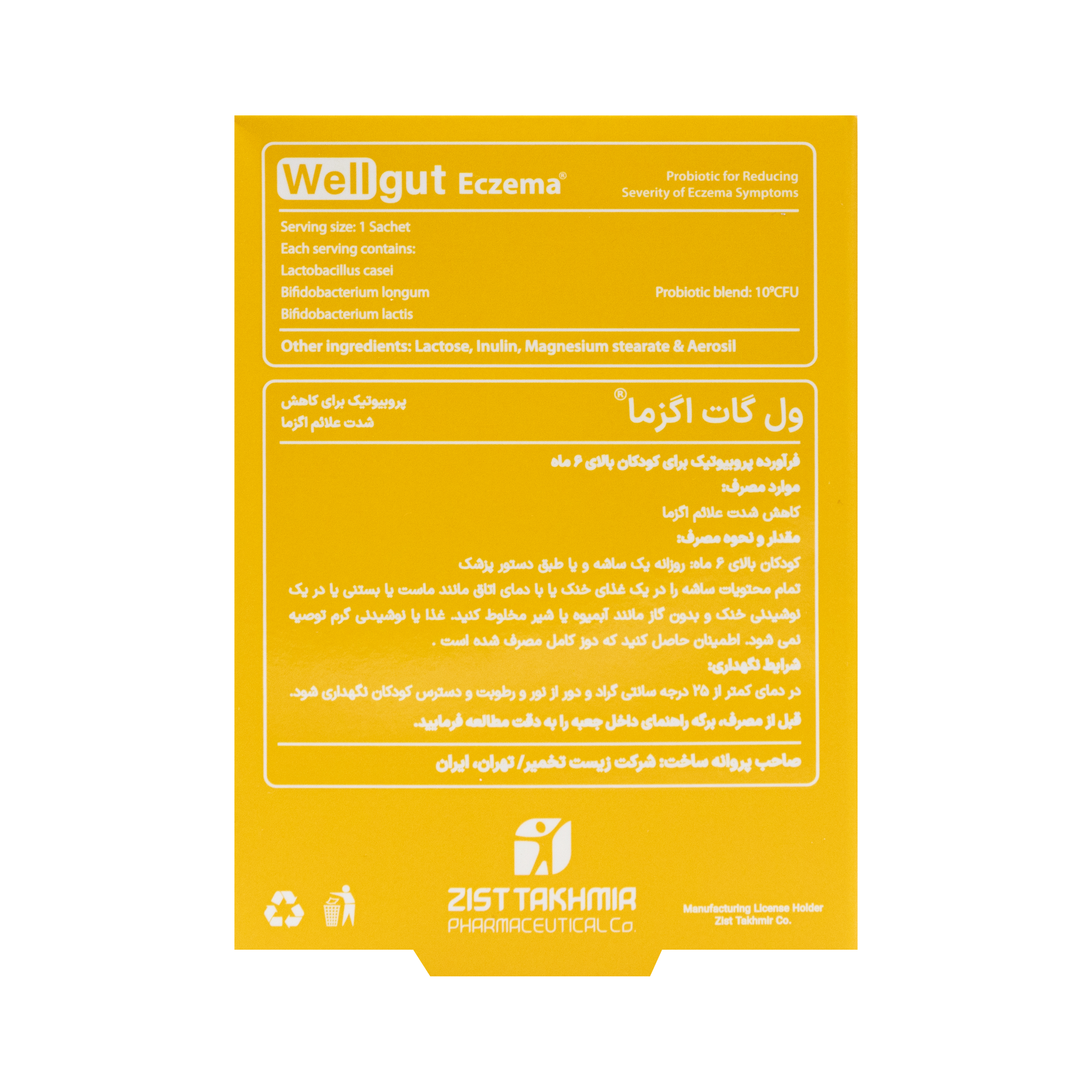 - حاوی لاکتوباسیلوس کازئی، بیفیدوباکتریوم لانگوم، بیفیدوباکتریوم لاکتیس