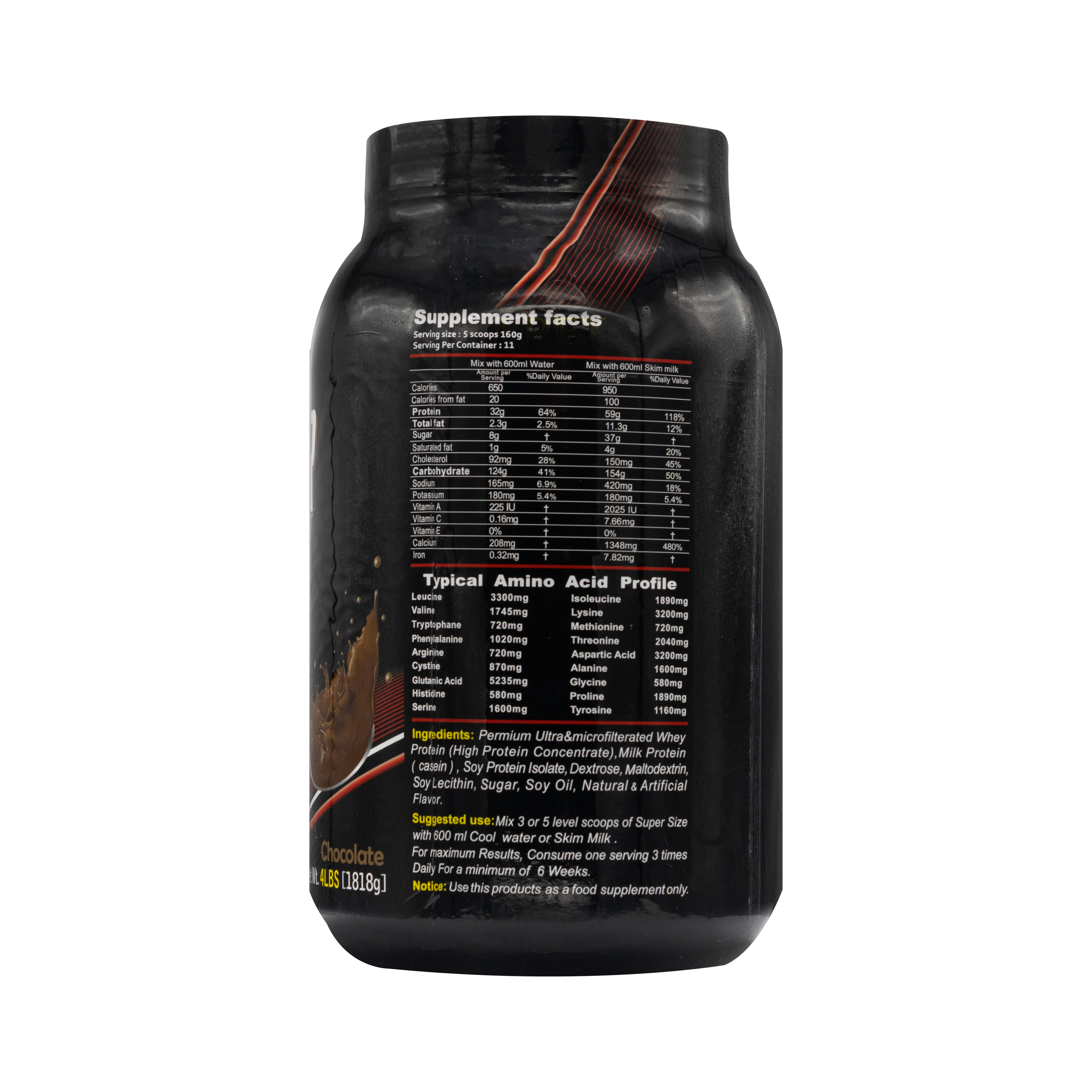 - حاوی 59 گرم پروتئین و 950 کالری در هر سروینگ حاوی 18 نوع آمینو اسید