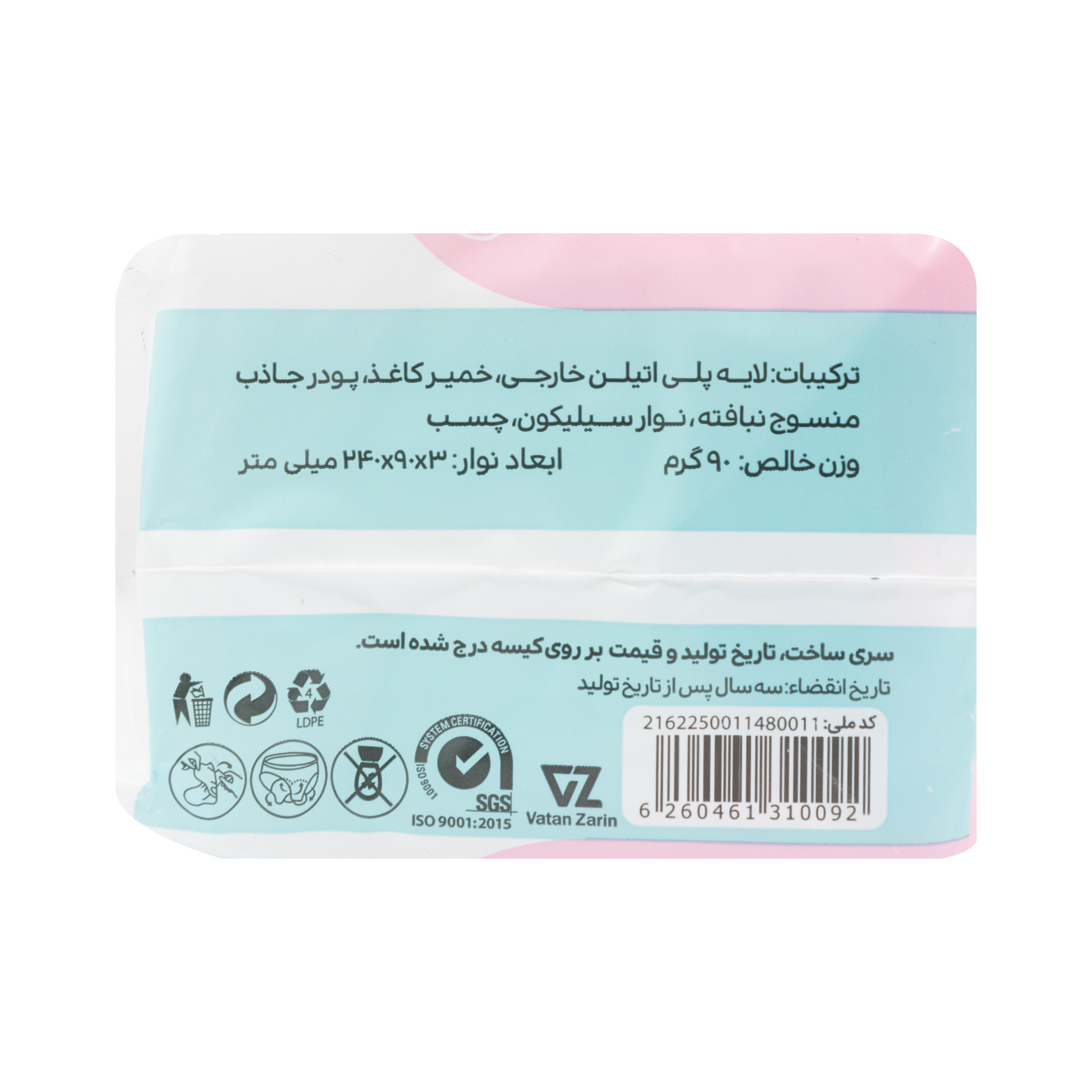 10 عدد پد در هر بسته (۳۰×۹۰×۲۴۰ میلی متر)