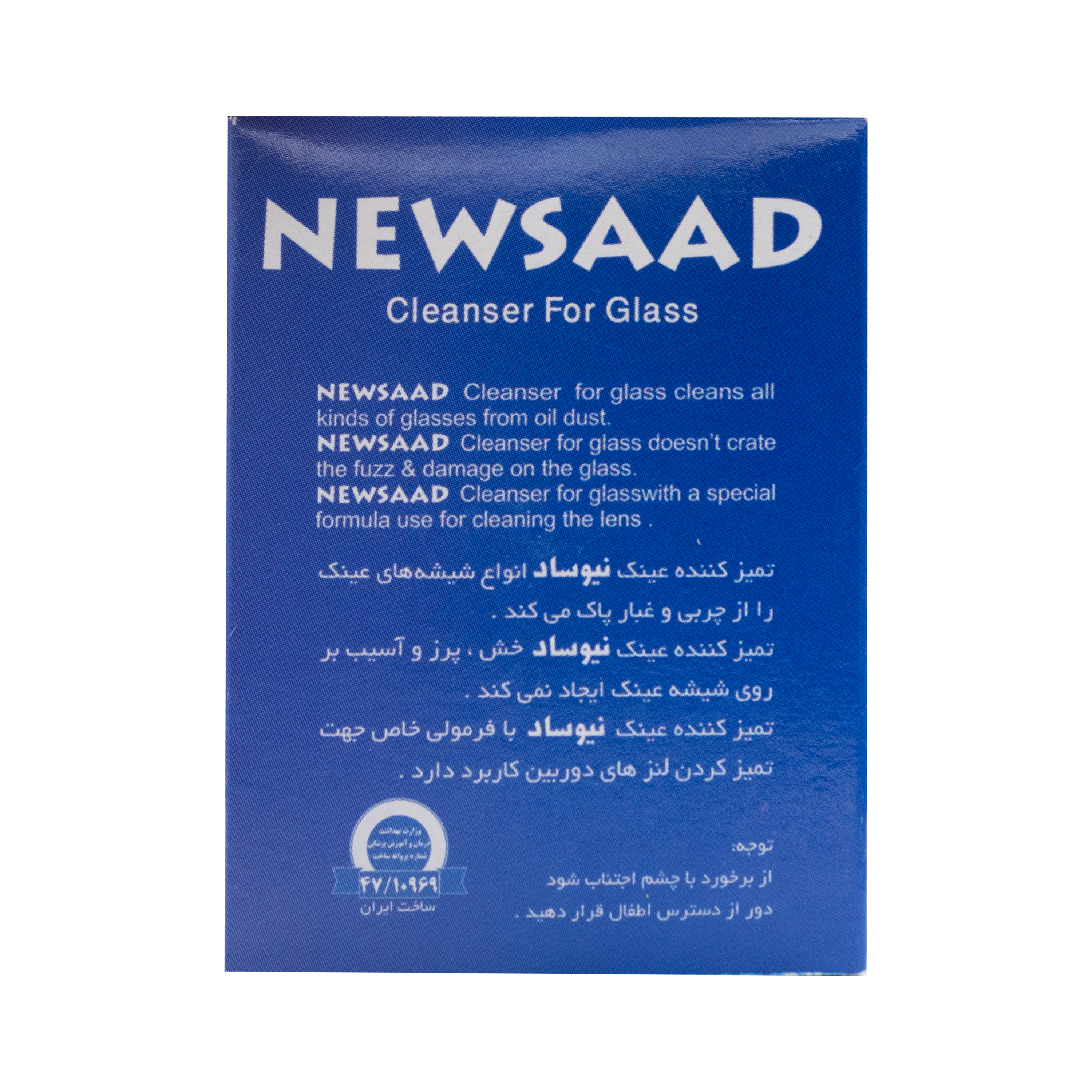 از این دستمال با فرمولی خاص می توان علاوه بر تمیز کردن انواع عینک، برای تمیز کردن لنز دوربین ها و تجهیزات نوری، آینه و شیشه های کوچک، صفحه نمایش تلفن همراه، تلویزون و کامپیوتر (غیر از نمایشگرهای LCD) استفاده کرد. تمیزکننده عینک نیوساد خش، پرز و آسیب بر روی شیشه عینک ایجاد نمی کند و براحتی قابل حمل در کیف یا جیب لباس می باشد.