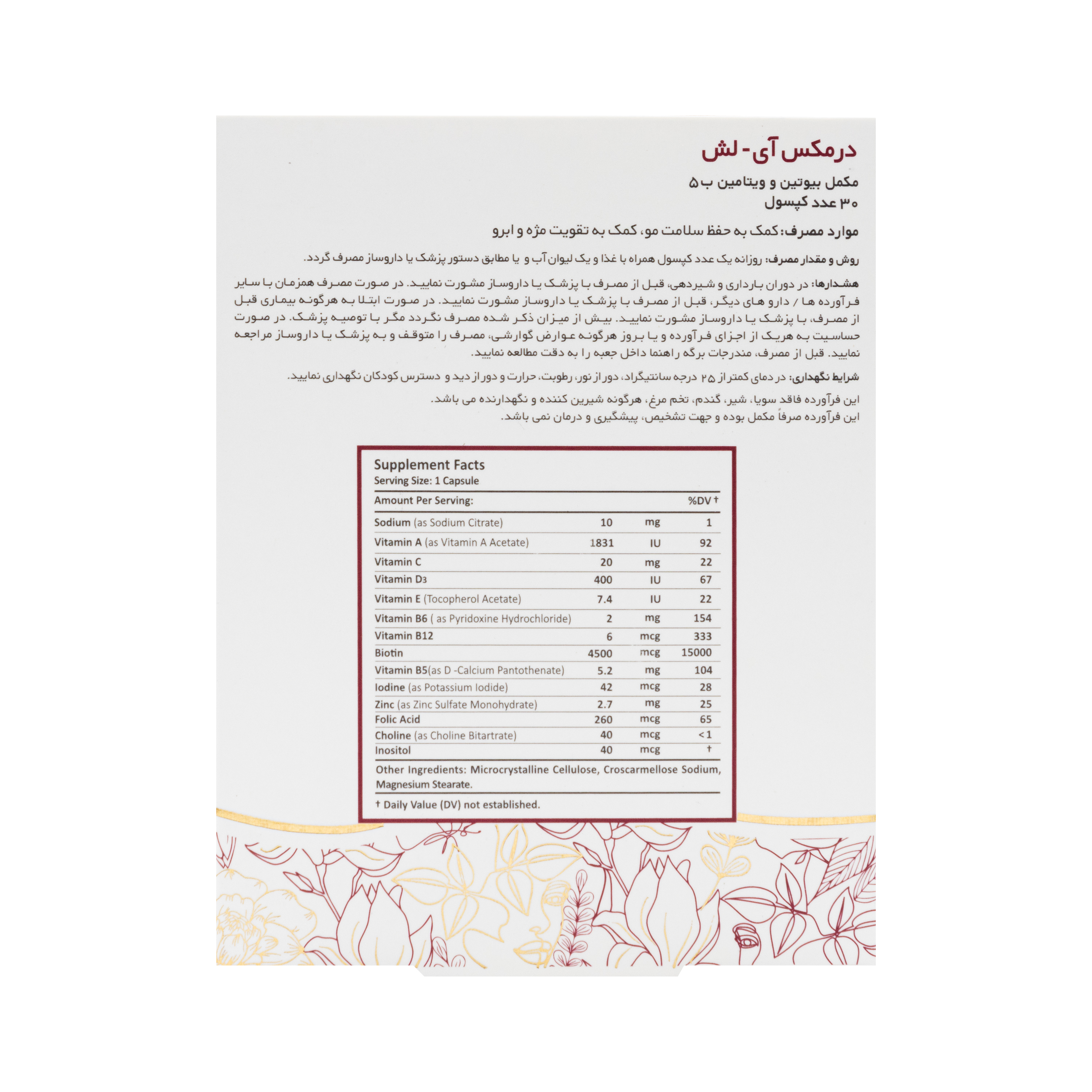 | اینوزیتول | 40 میکروگرم |