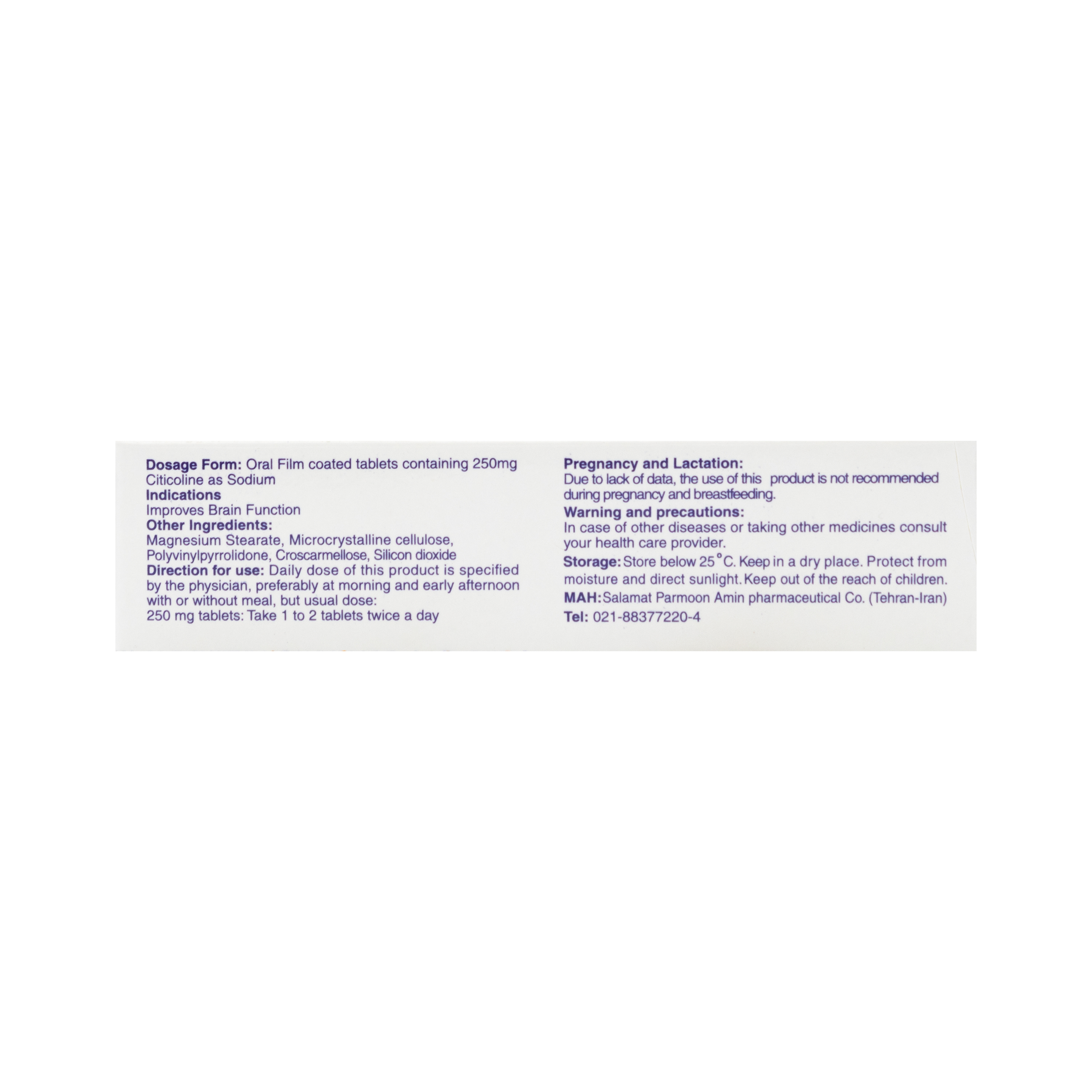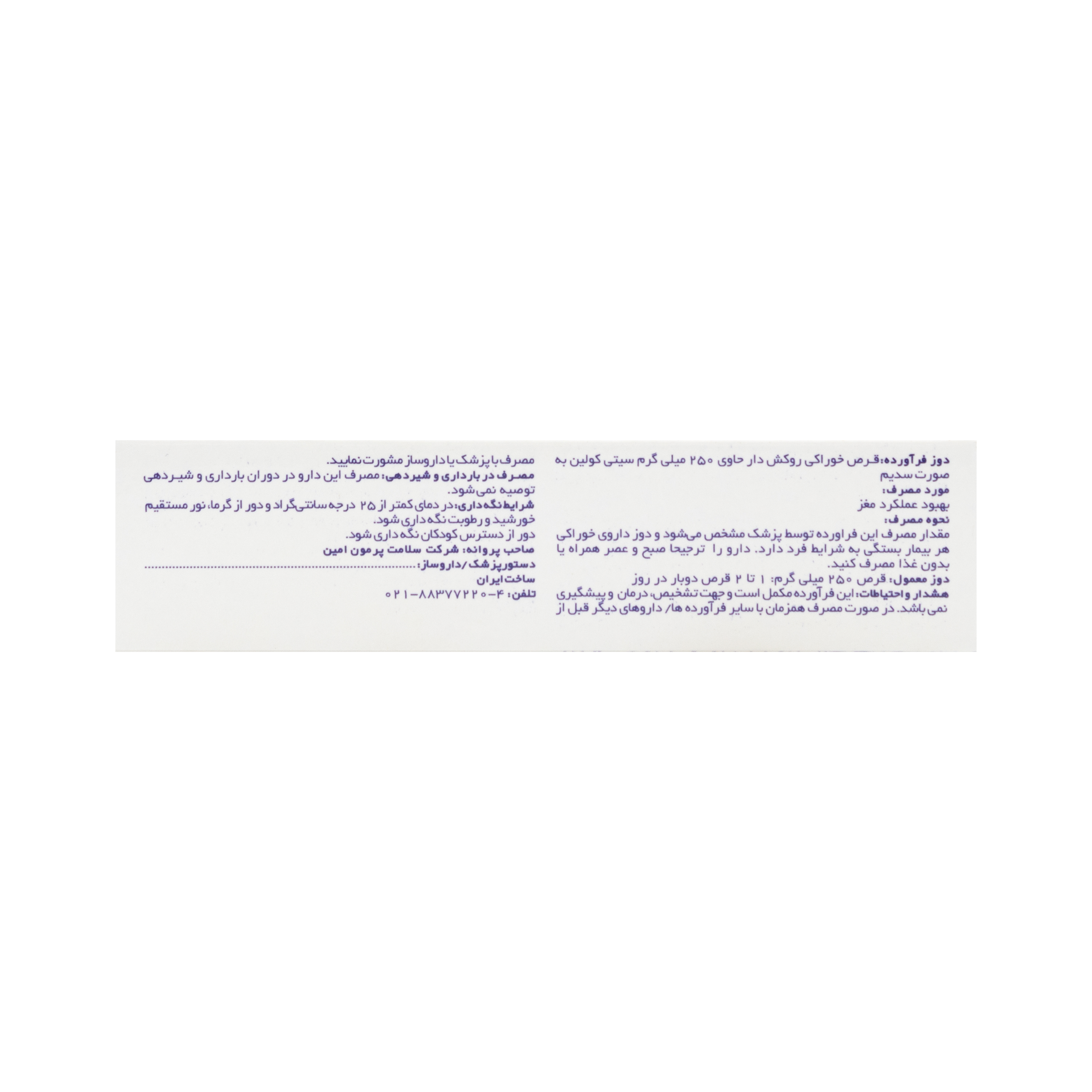 | سیتی کولین | 250 میلی گرم |