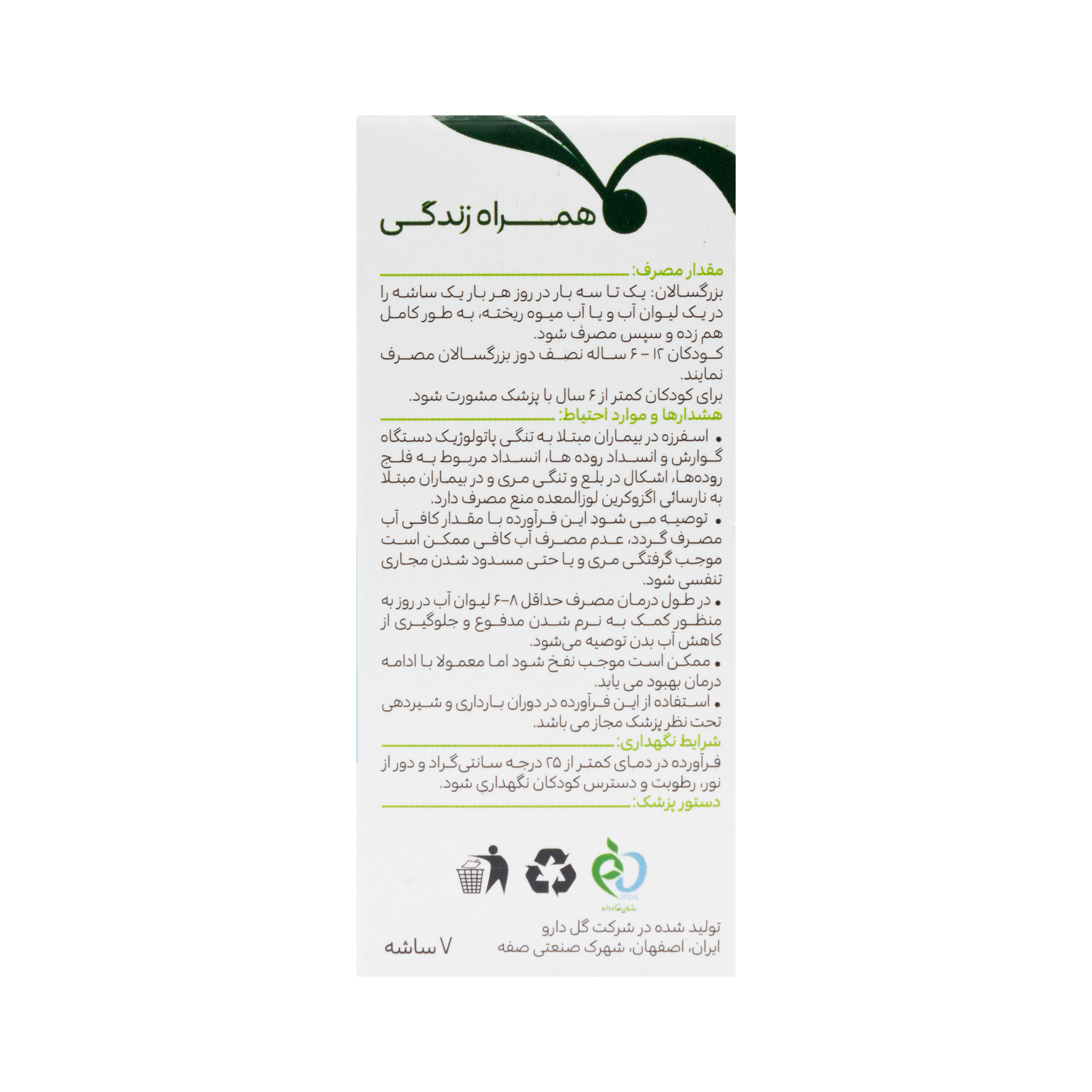 تولید شده در شرکت داروسازی گل دارو اصفهان-ایران