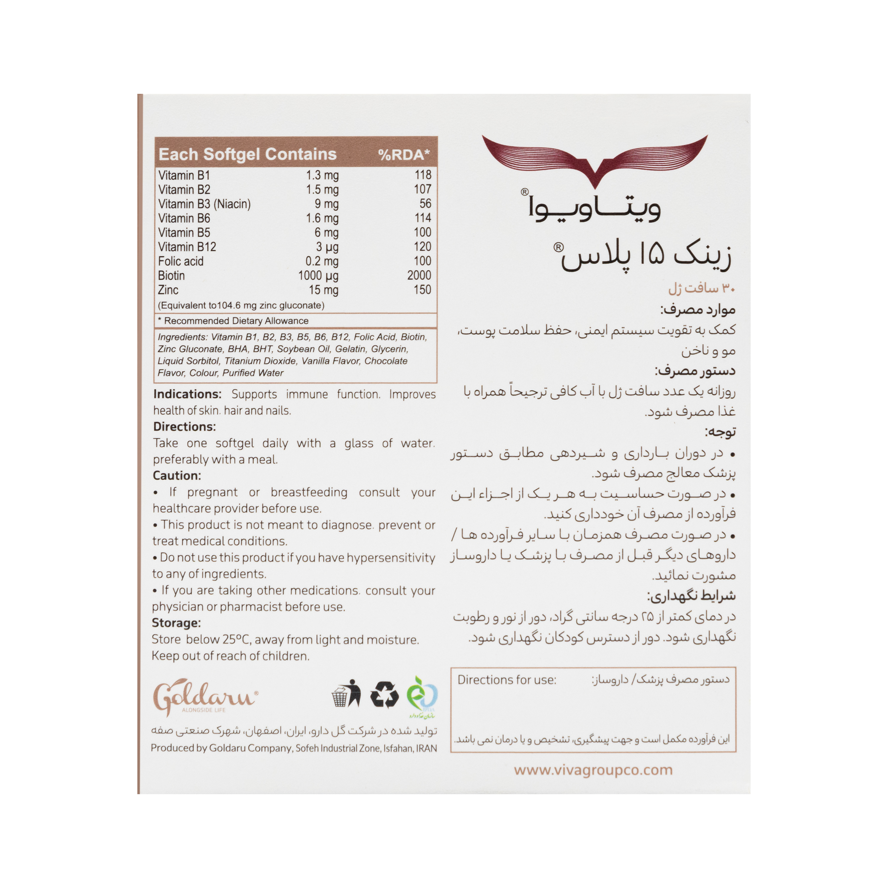 سافت ژل زینک پلاس 15 ویتاویوا گل دارو