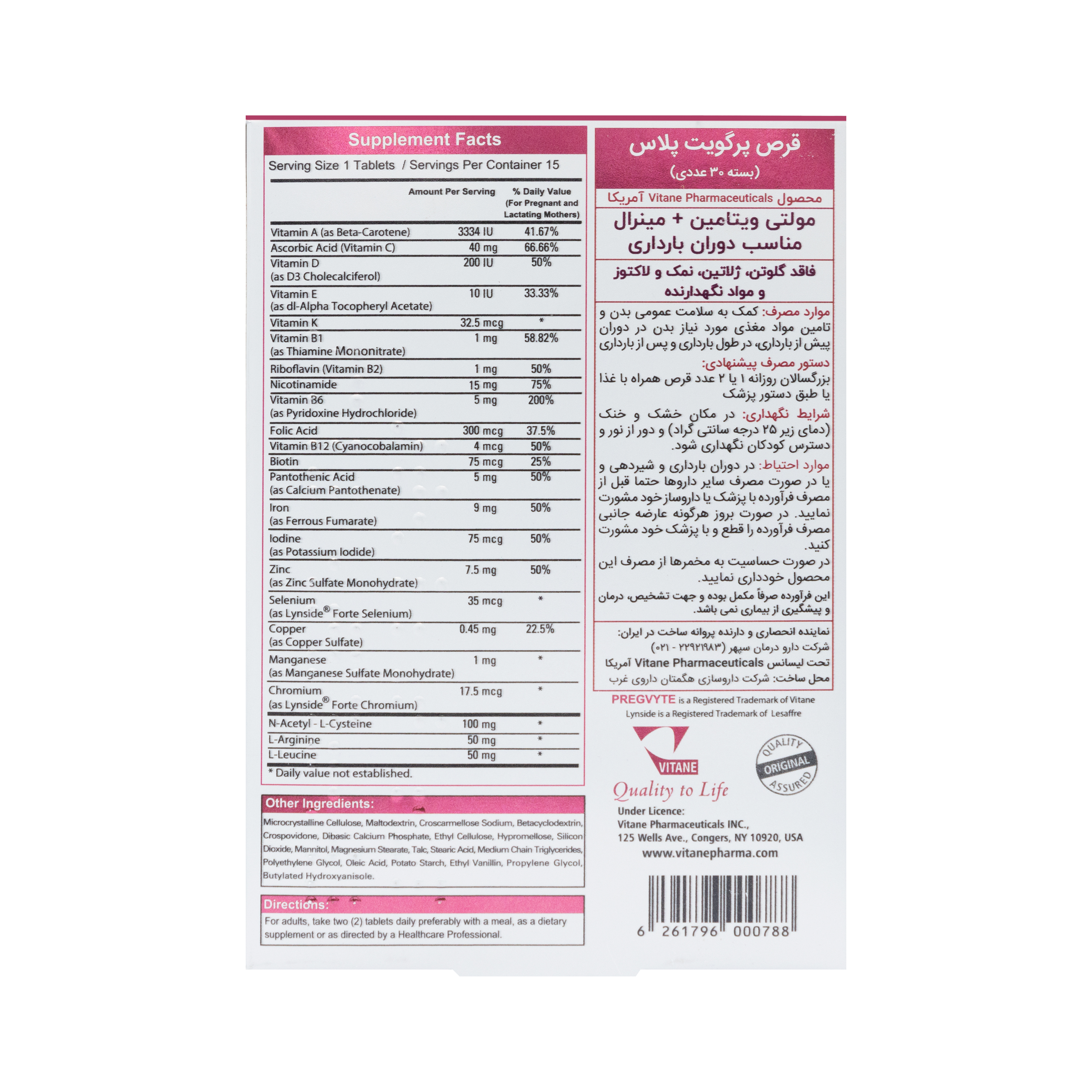 - حاوی مولتی ویتامین به همراه مینرال مناسب دوران بارداری