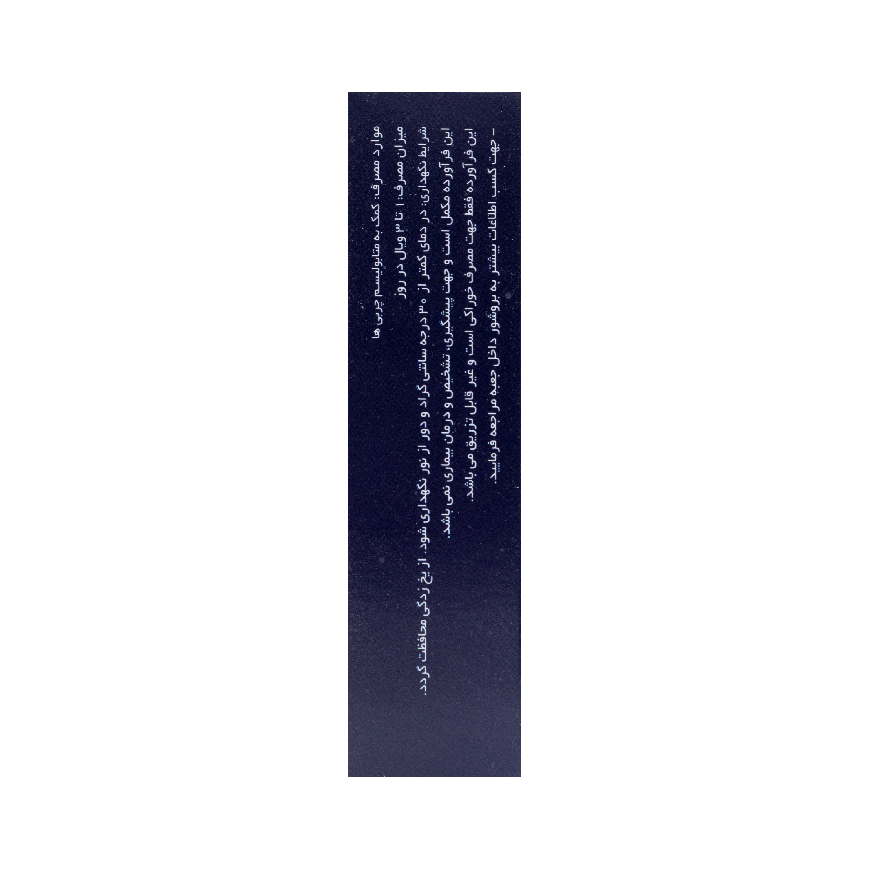 - دور از نور و در دمای کمتر از ۲۵ درجه سانتیگراد نگهداری شود.