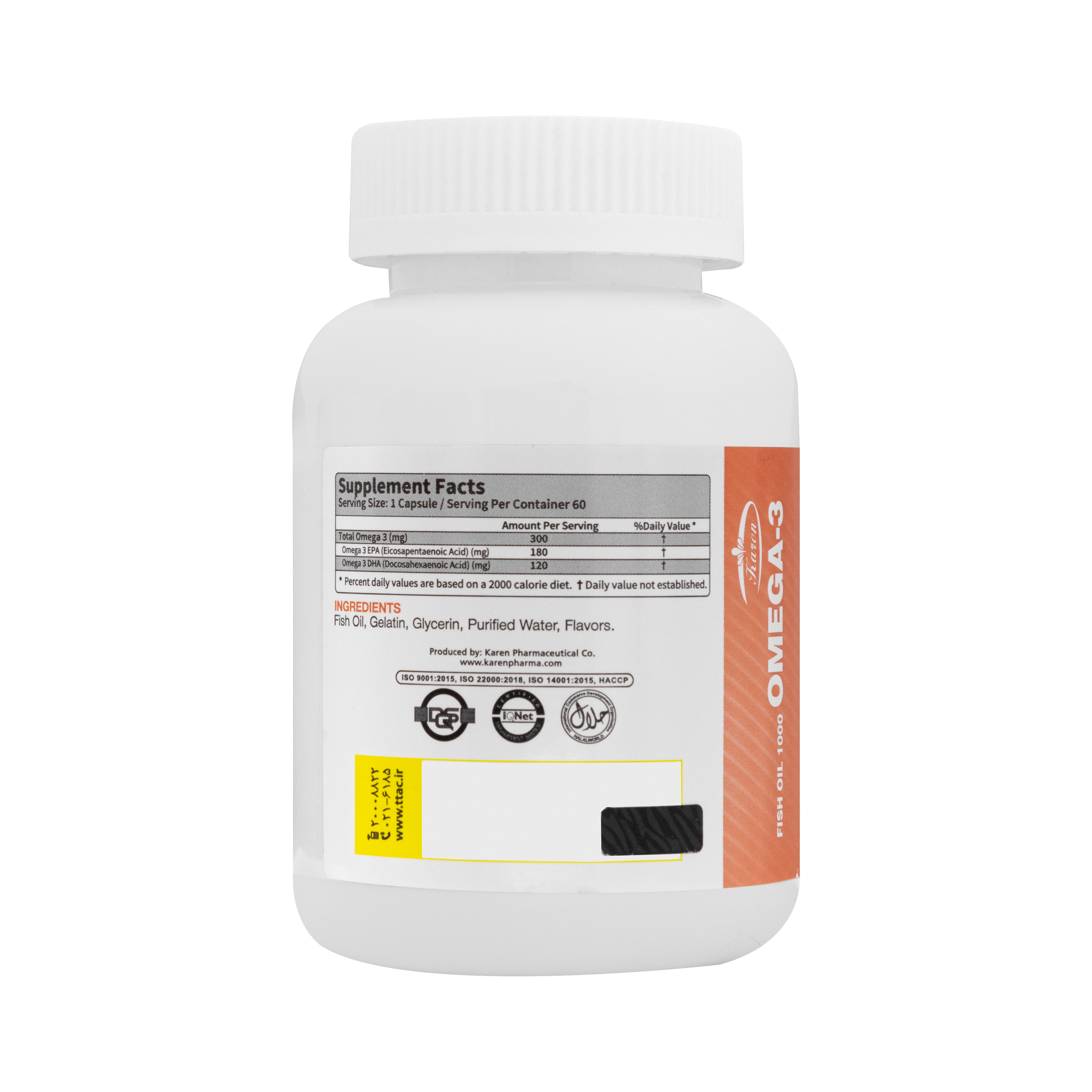 کپسول نرم امگا 3 قوطی 1000 میلی گرمی 60 عددی کارن