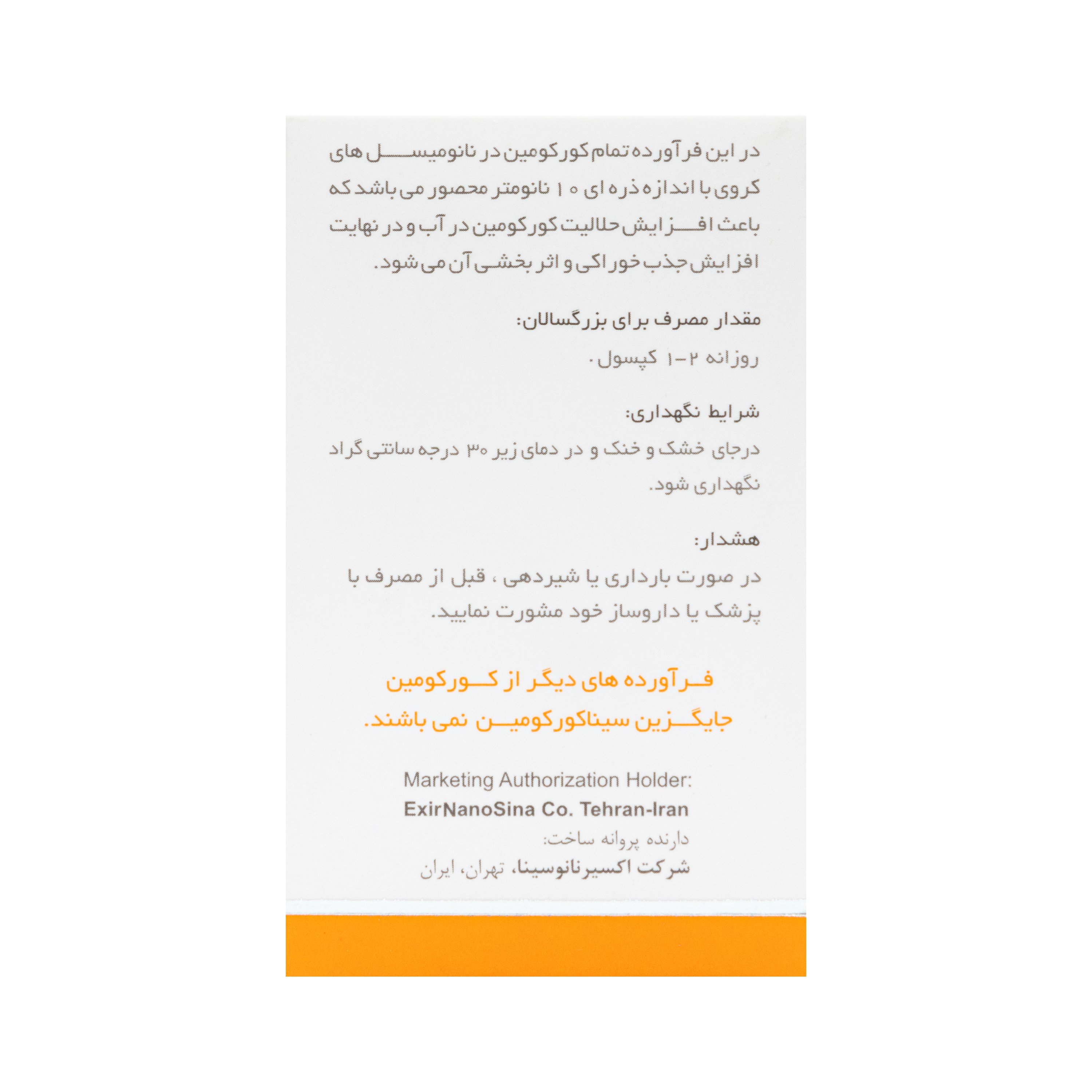 - معرفی کپسول سیناکورکومین اکسیر نانو سینا