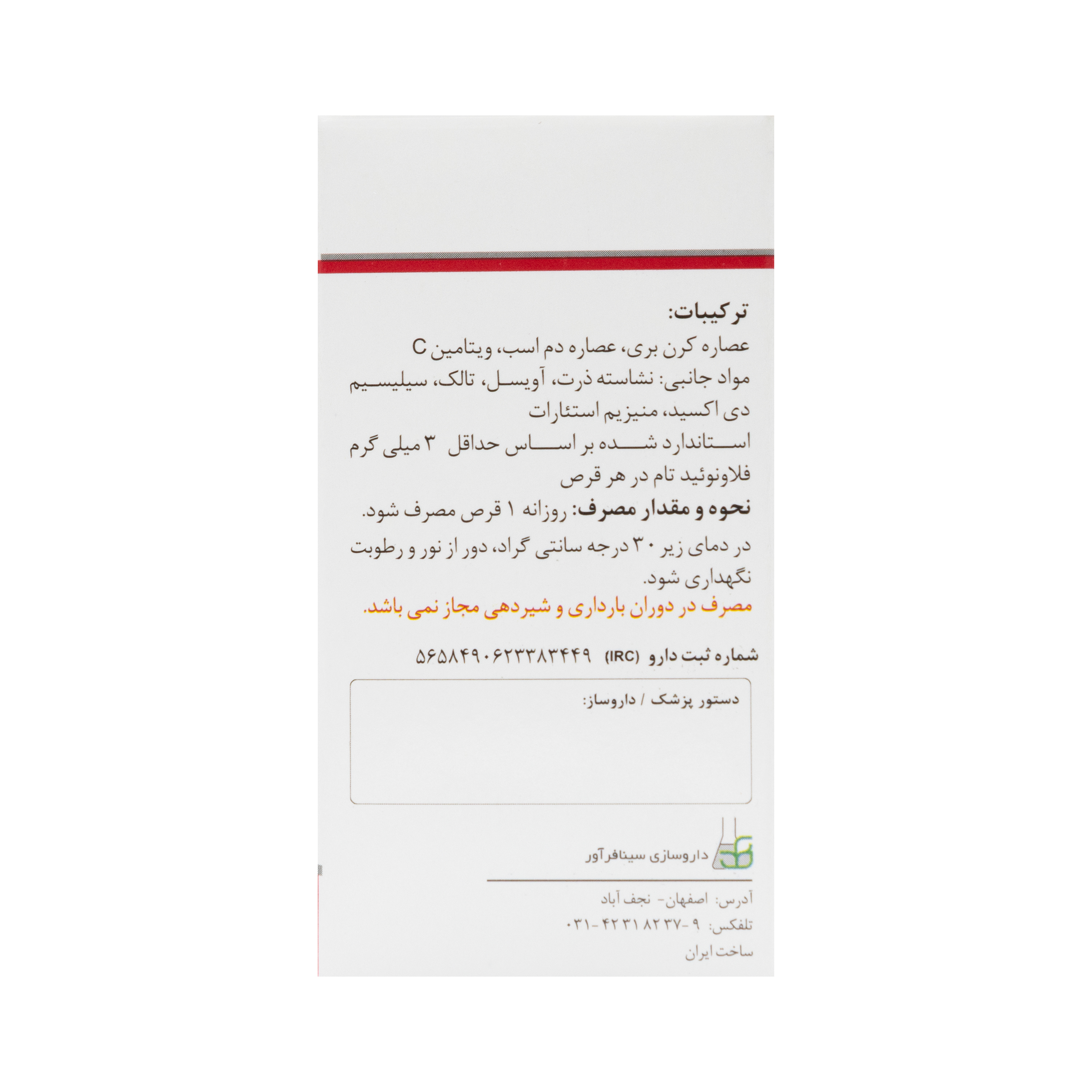 - حداقل ۳ میلی گرم فلاونوئید تام در هر قرص
