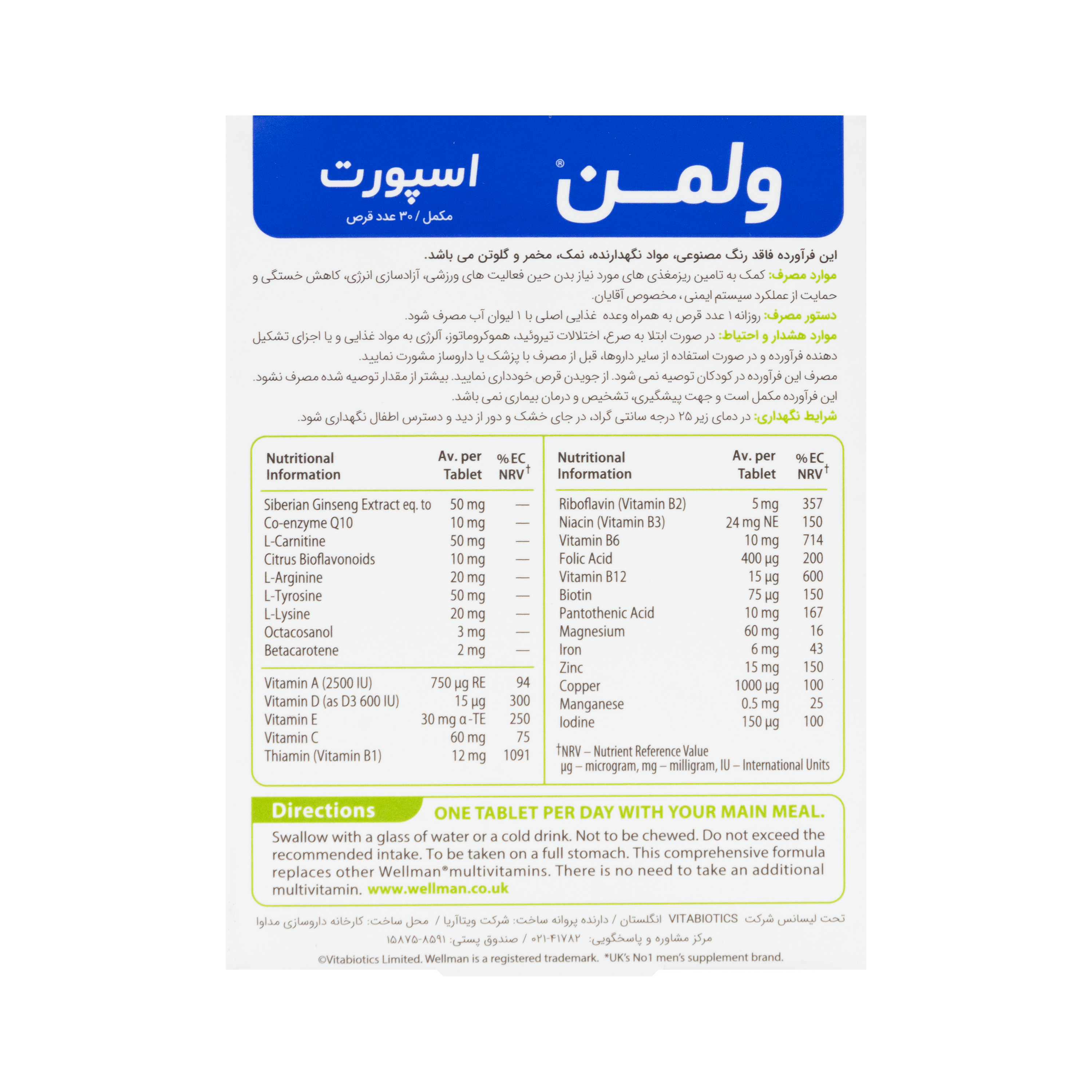ساخت ایران تحت لیسانس شرکت VITABIOTICS انگلستان
