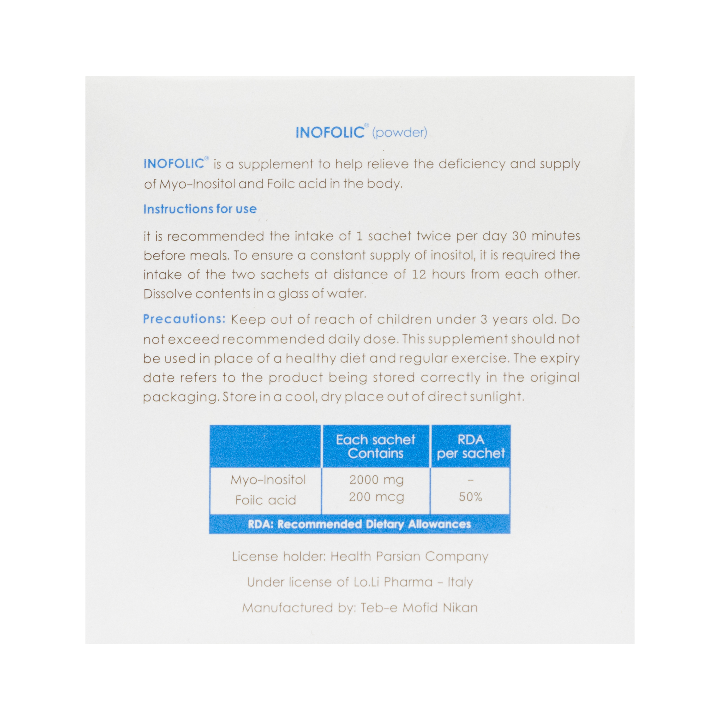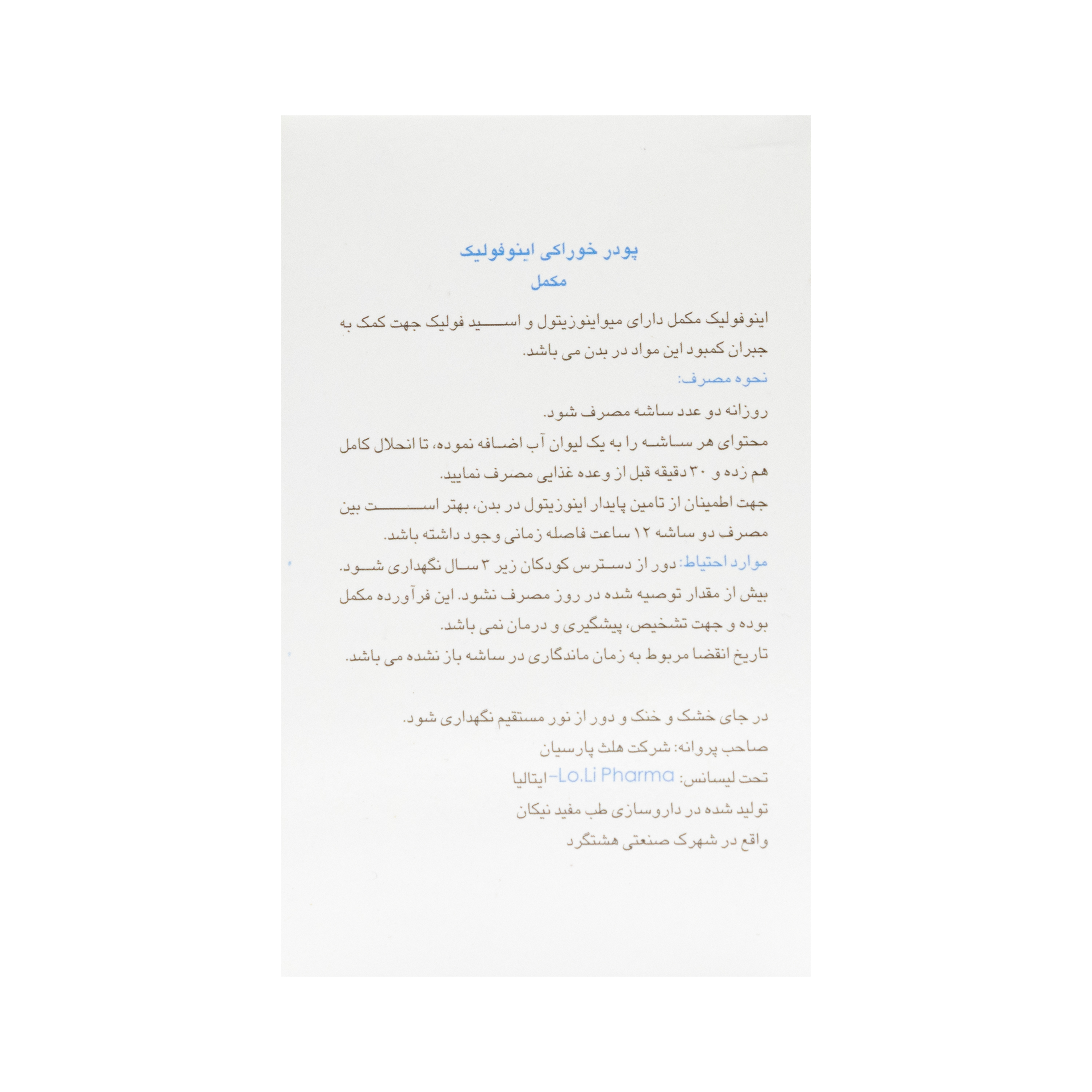 - معرفی پودر خوراکی اینوفولیک لو لی فارما