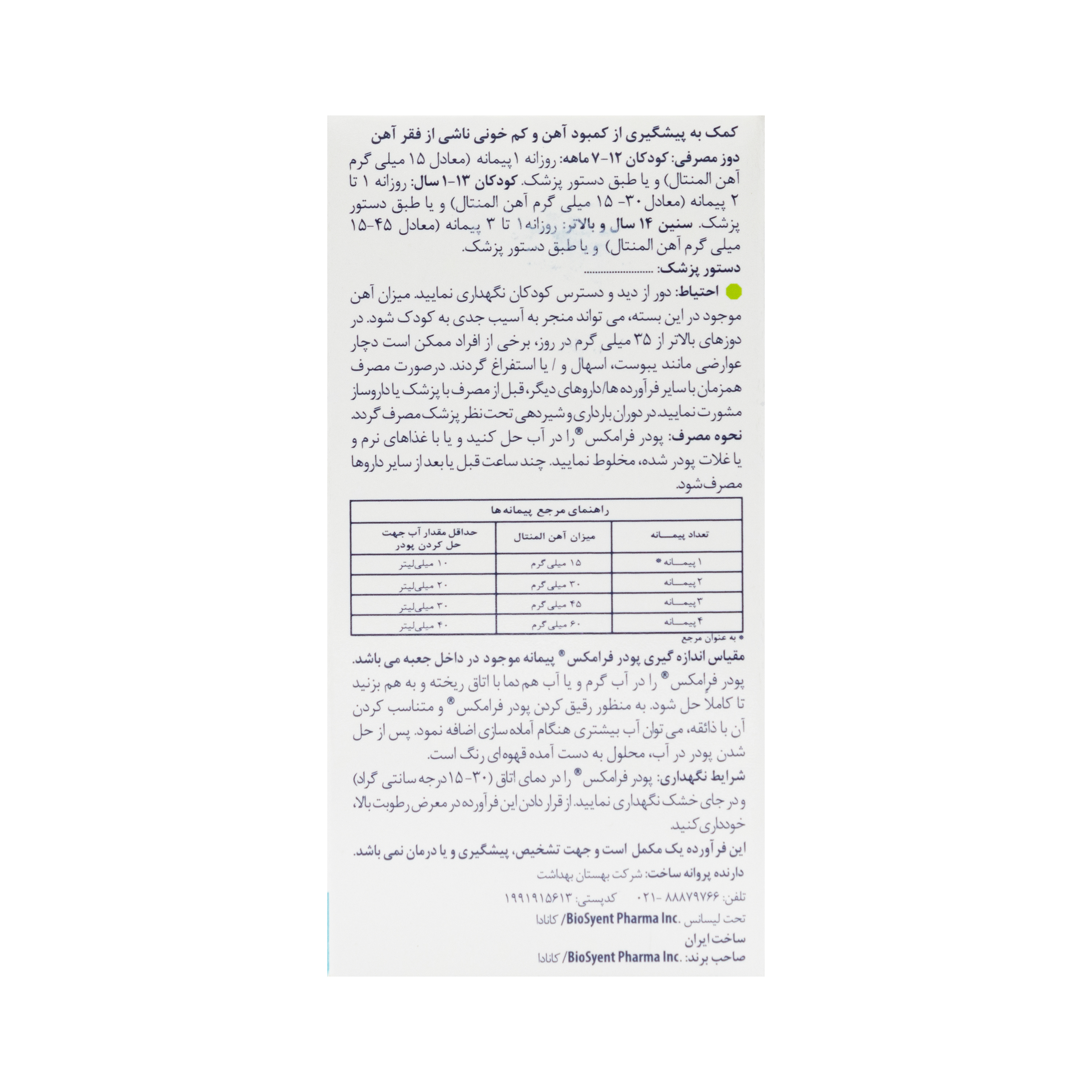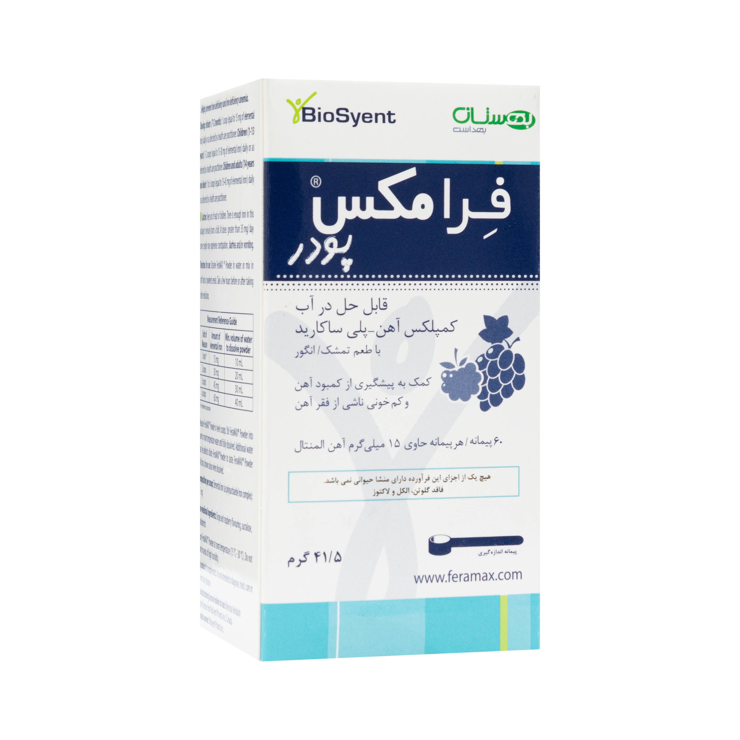 پودر فرامکس بیوساینت در ایران تحت لیسانس BioSyent Pharma Inc کانادا تولید میشود. این برند با بهرهگیری از دانش و فناوری روز دنیا، مکملهای غذایی با کیفیت بالا را روانه بازار میکند. فرامکس بیوساینت با هدف رفع نیاز بدن به آهن و بهبود وضعیت خونسازی تولید شده است.