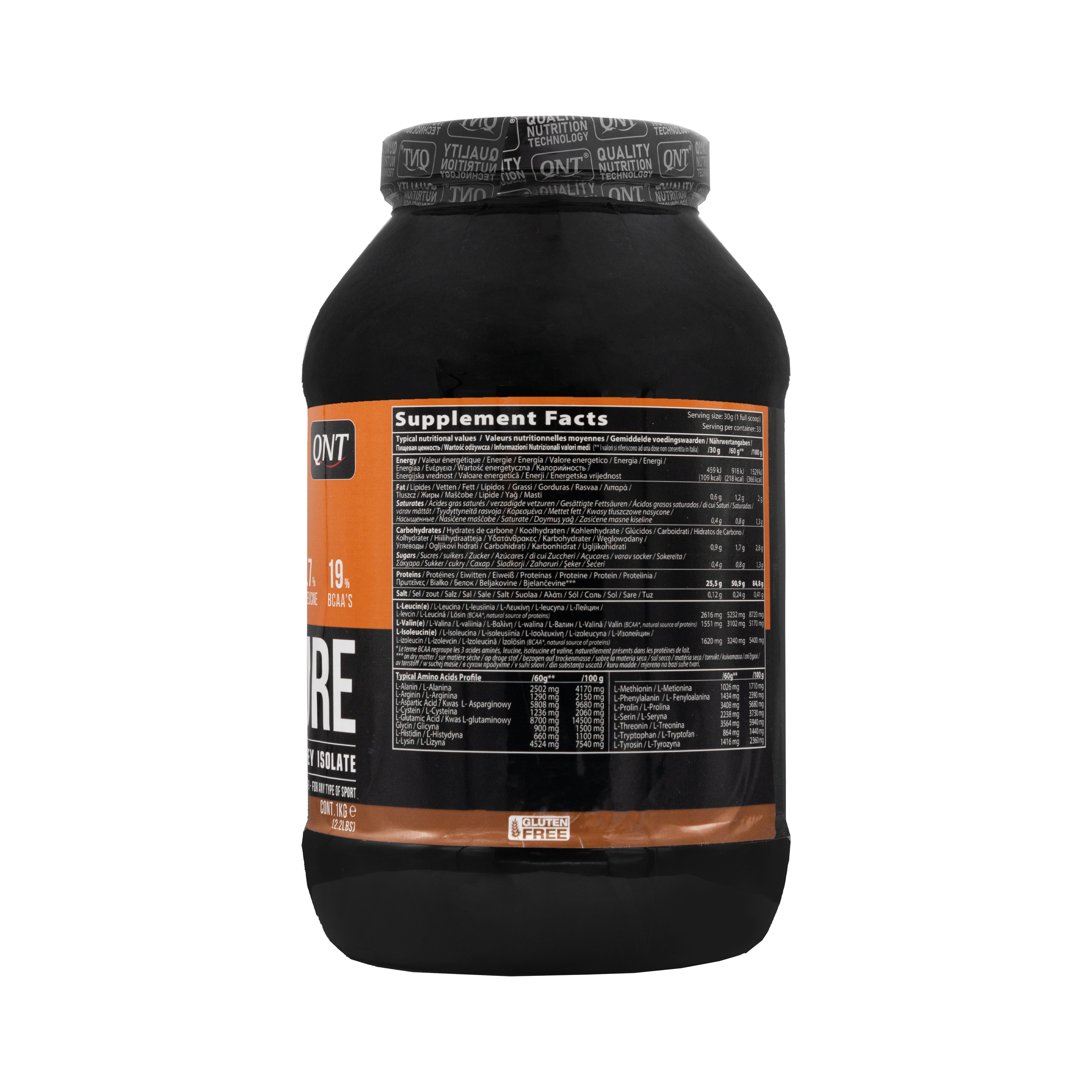 حاوی پروتئین وی ایزوله (85 درصد پروتئین)، 8.7 درصد ال-لوسین و 19 درصد بی سی ای ای