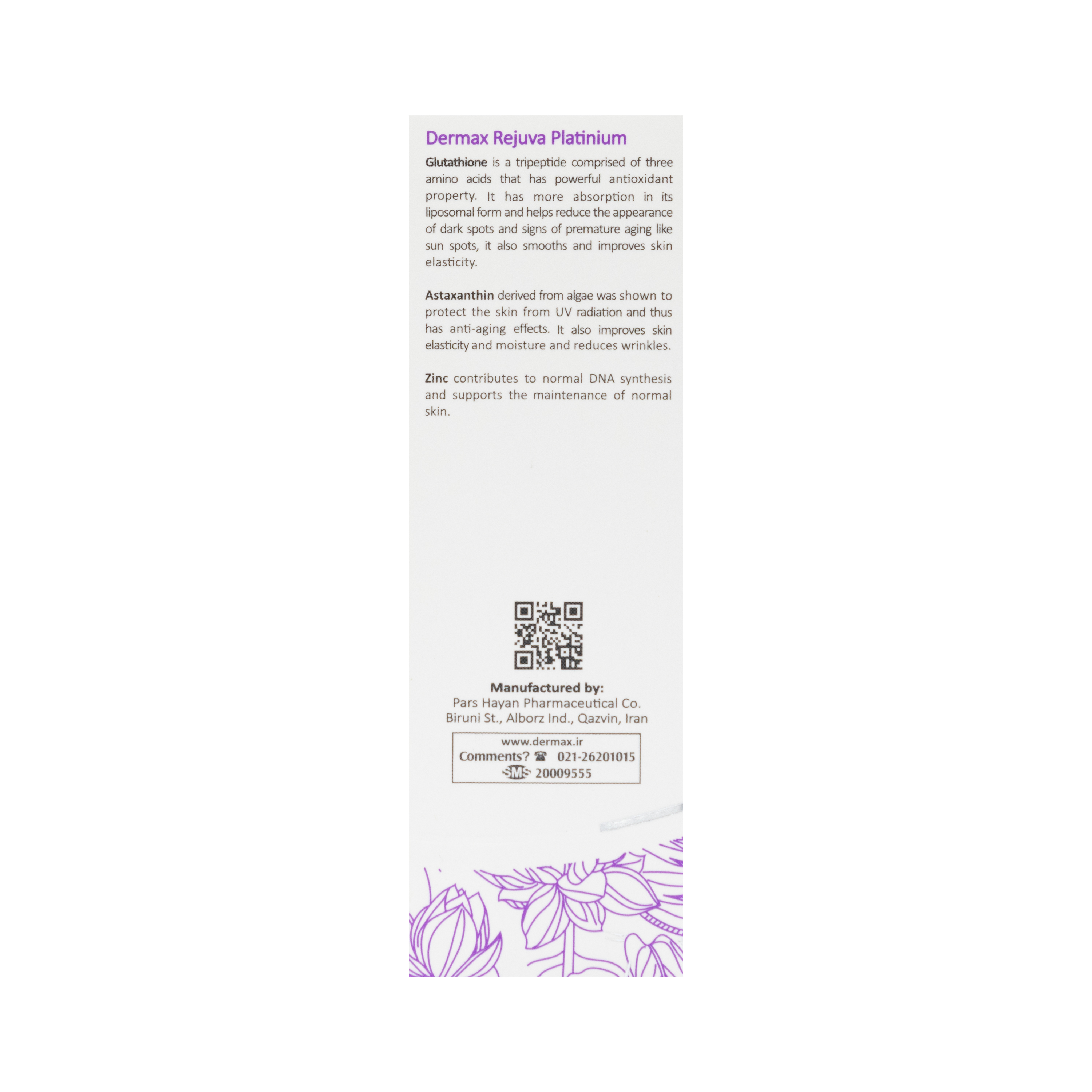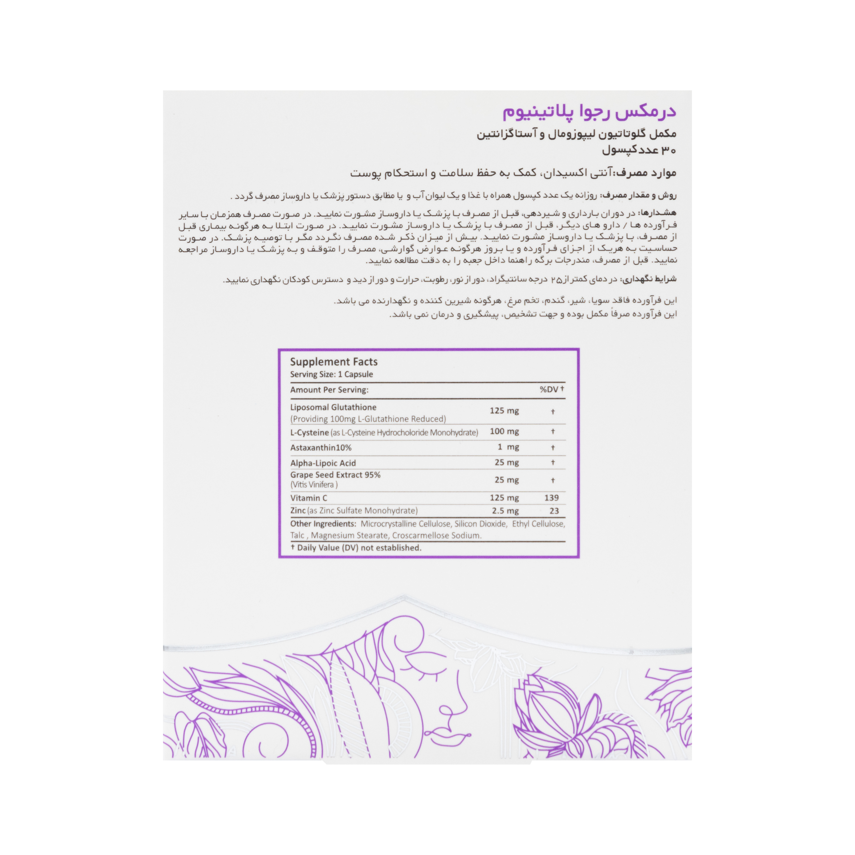 کپسول رجوا پلاتینیوم درمکس یک مکمل موثر برای جوانسازی پوست و بهبود سلامت آن است. این محصول با ترکیبات قوی آنتیاکسیدانی خود، به محافظت از پوست در برابر آسیبهای محیطی کمک کرده و باعث شادابی و طراوت پوست میشود. با این حال، قبل از مصرف هرگونه مکمل، بهتر است با پزشک یا داروساز مشورت کنید.
