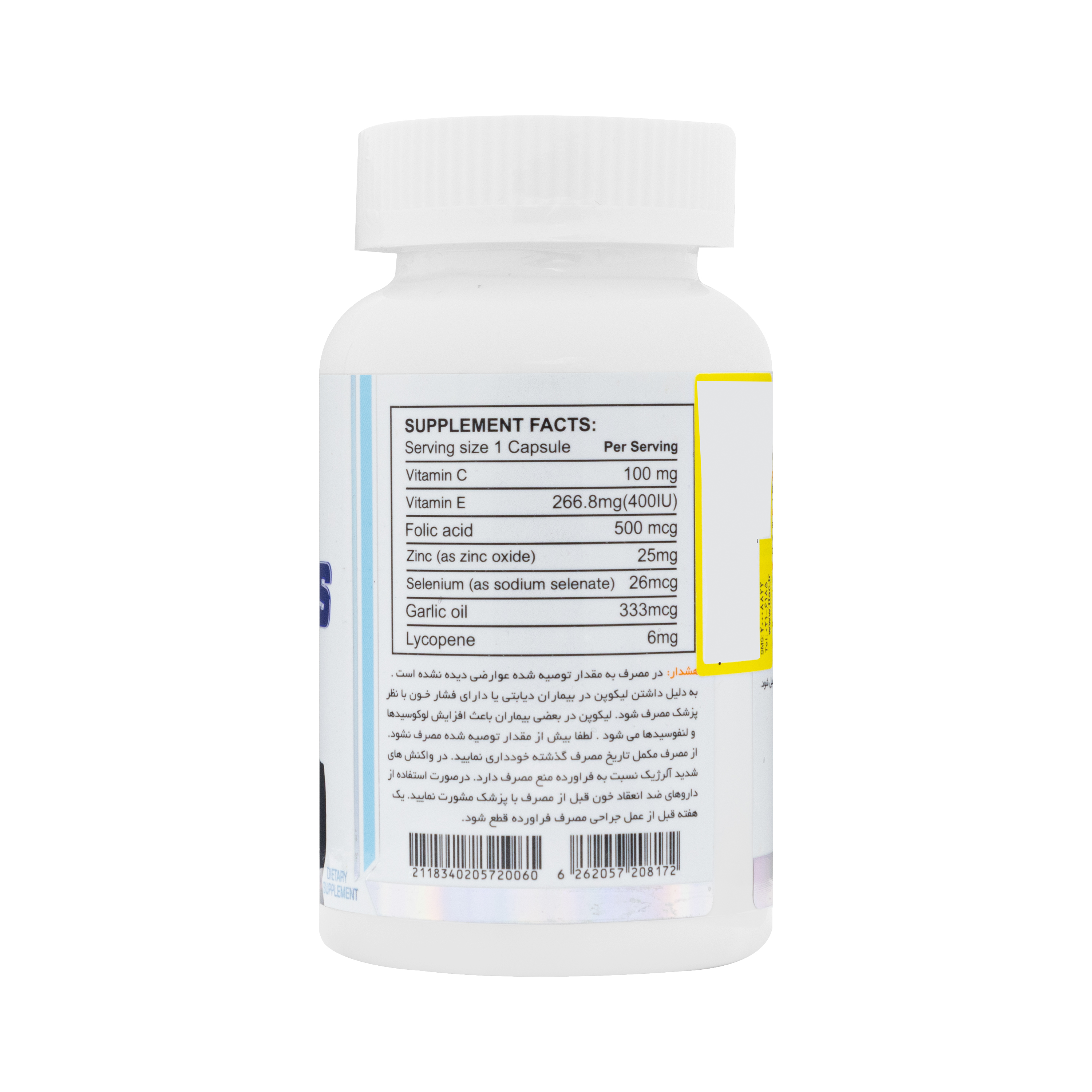 حاوی ویتامین C ،E، اسید فولیک، زینک، سلنیوم، روغن سیر، لیکوپن