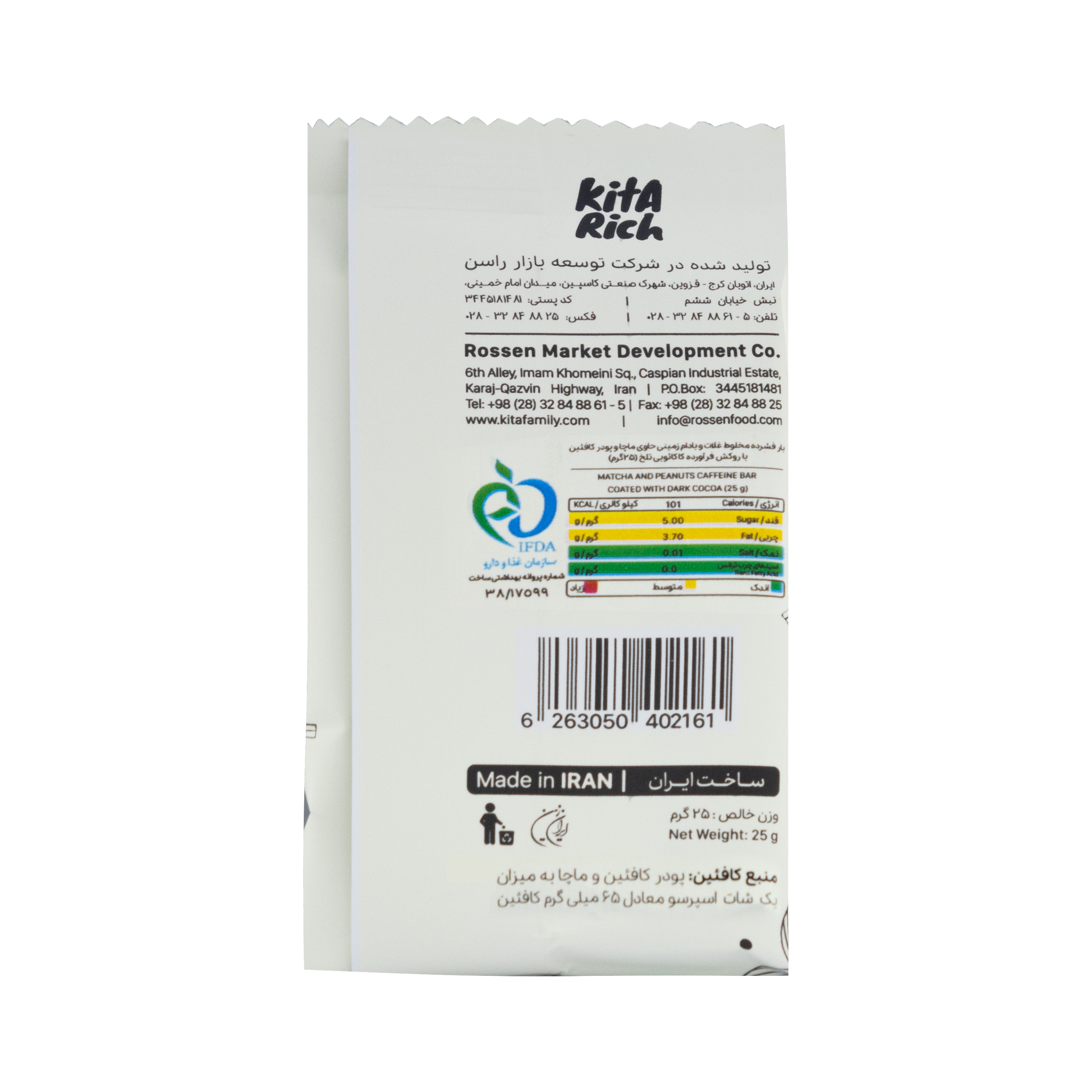 Ingredients: Glucose، Peanuts، Quinoa، Corn Flakes، Oat، Matcha، Sunflower Oil، Caffeine Powder، Dark Cocoa