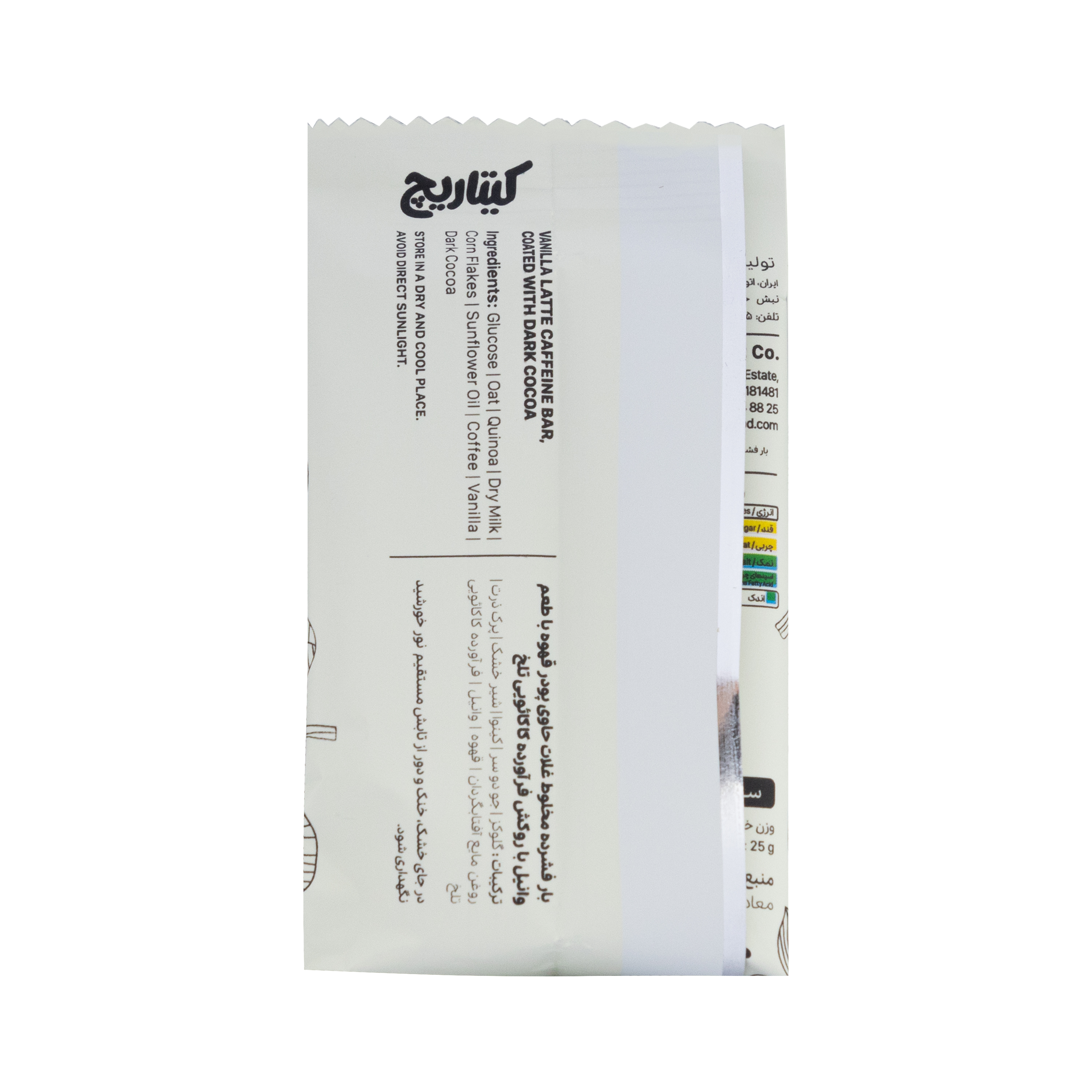 بار فشرده مخلوط غلات حاوی پودر قهوه با طعم وانیل با روکش فرآورده کاکائویی تلخ