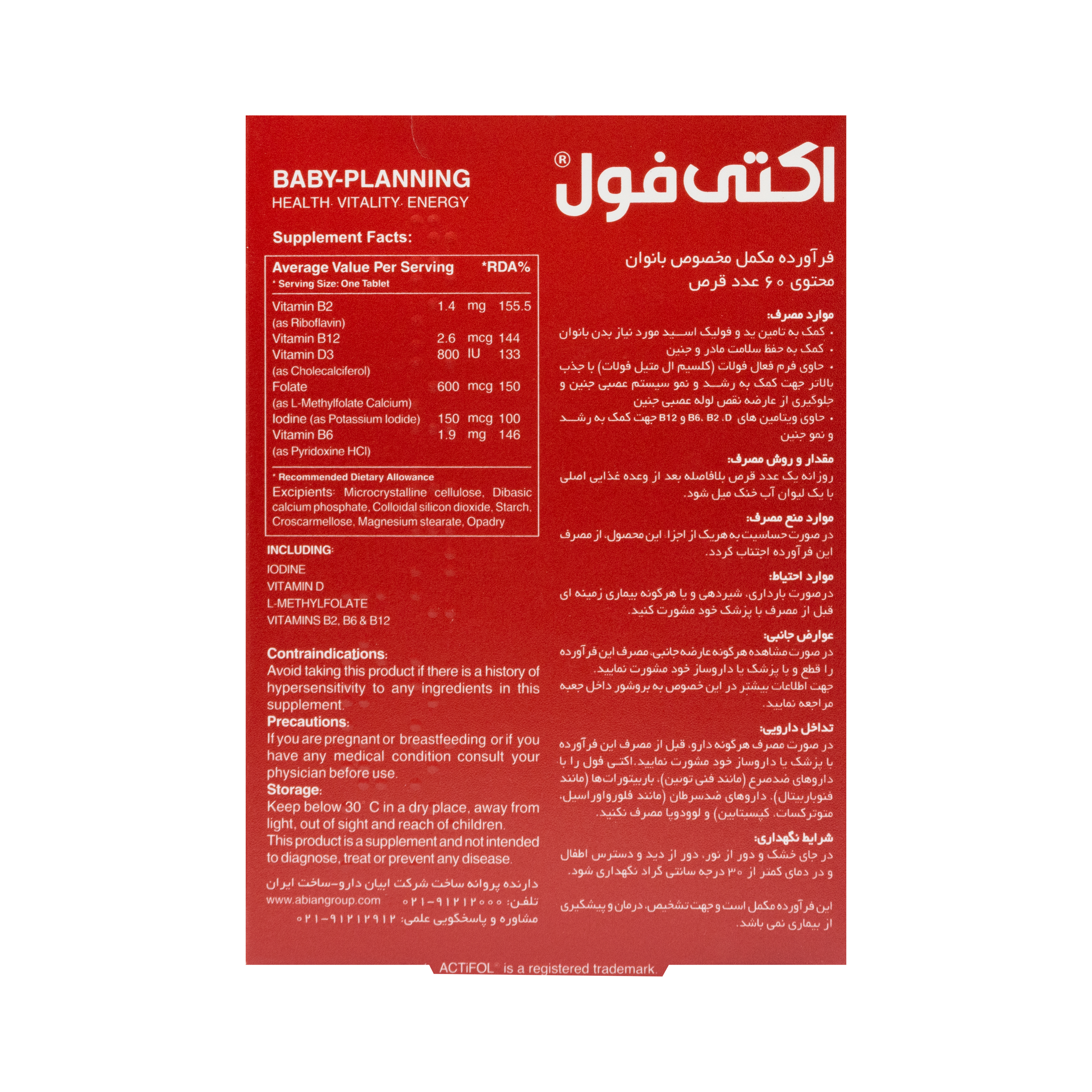 قرص اکتی فول، حاوی فرم فعال فولات با جذب بالاتر