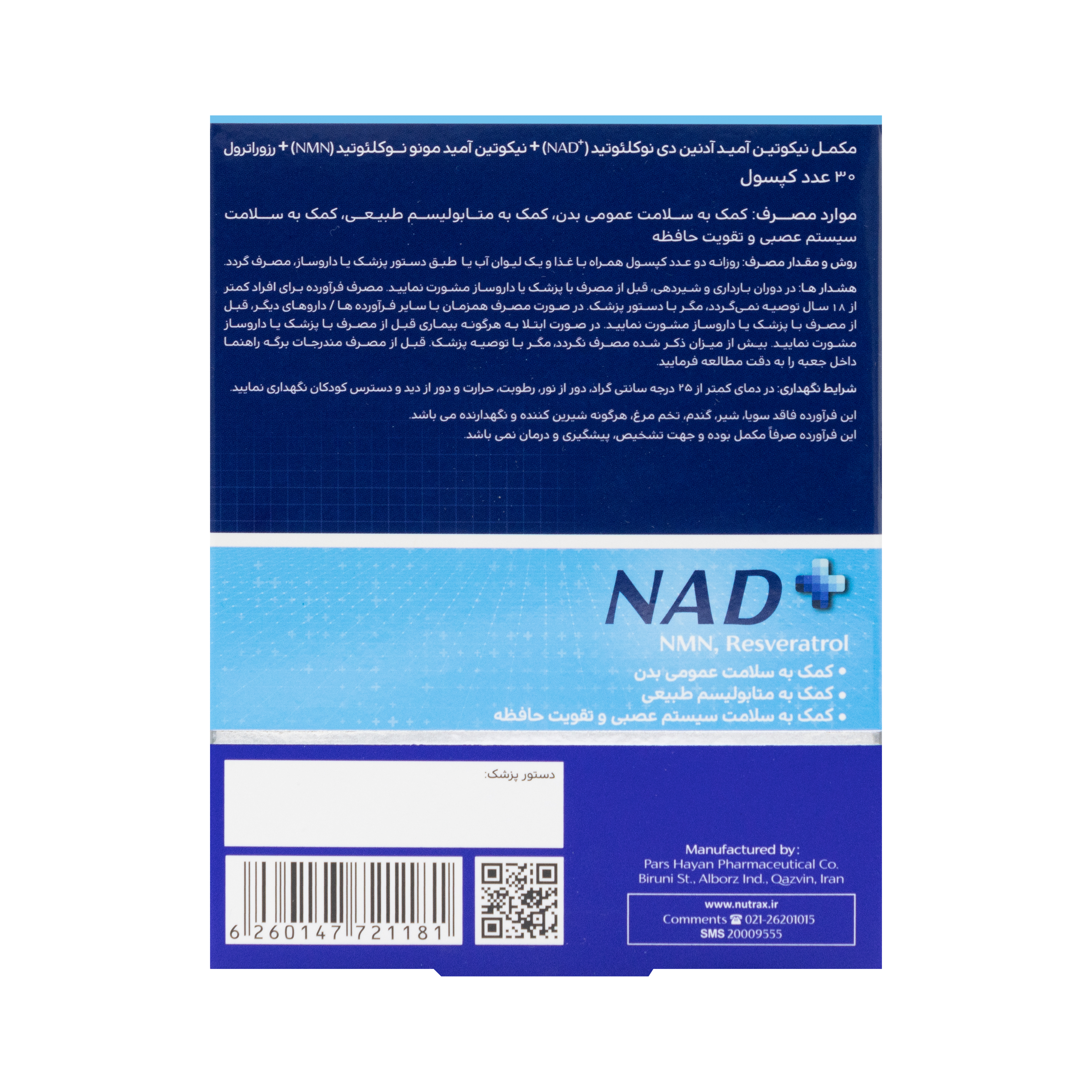 این مکمل، محصولی از برند نوتراکس است که توسط شرکت داروسازی پارس حیان تولید میشود. برند تجاری نوتراکس، با بهرهگیری از دانش روز و فناوریهای پیشرفته، محصولات با کیفیت و مؤثری را در زمینه مکملهای غذایی ارائه میدهد. کپسول ان ای دی پلاس نوتراکس حاوی ترکیبی از مواد مغذی است که به طور همافزایی عمل کرده و به افزایش سطح NAD+ در بدن کمک میکنند. این افزایش سطح NAD+ میتواند منجر به بهبود عملکرد میتوکندری، افزایش تولید انرژی، تقویت سیستم عصبی و بهبود سلامت عمومی شود.