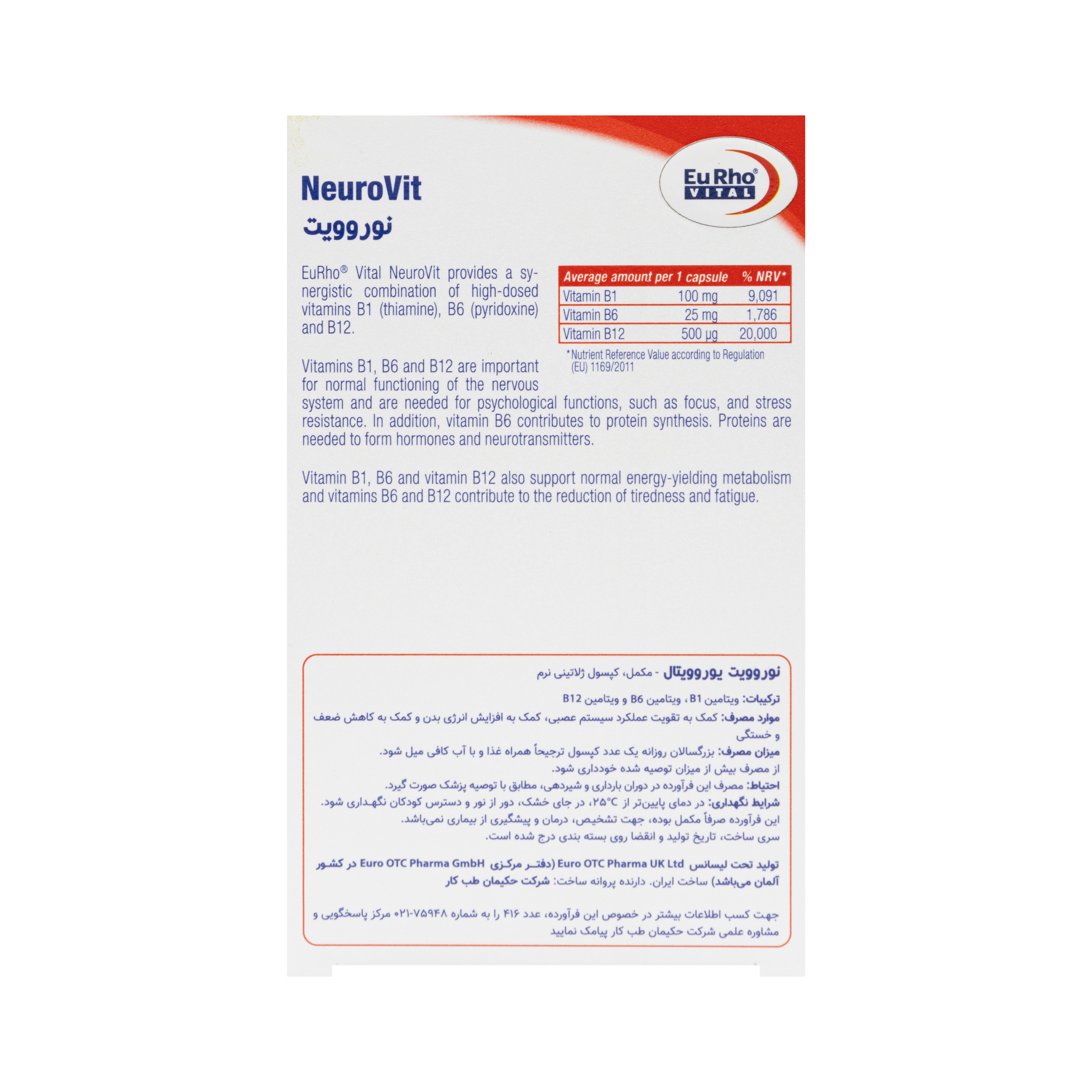 کپسول نوروویت یوروویتال یک مکمل ویتامین گروه ب است که در ایران تحت لیسانس شرکت یورو او تی سی فارما کشور آلمان تولید میشود. این شرکت یکی از بهترین تولیدکنندگان مکملهای غذایی در اروپا است و محصولات خود را با بالاترین کیفیت و بر اساس آخرین تحقیقات علمی تولید میکند. نوروویت به طور خاص برای حمایت از سلامت سیستم عصبی و بهبود عملکرد آن طراحی شده است.