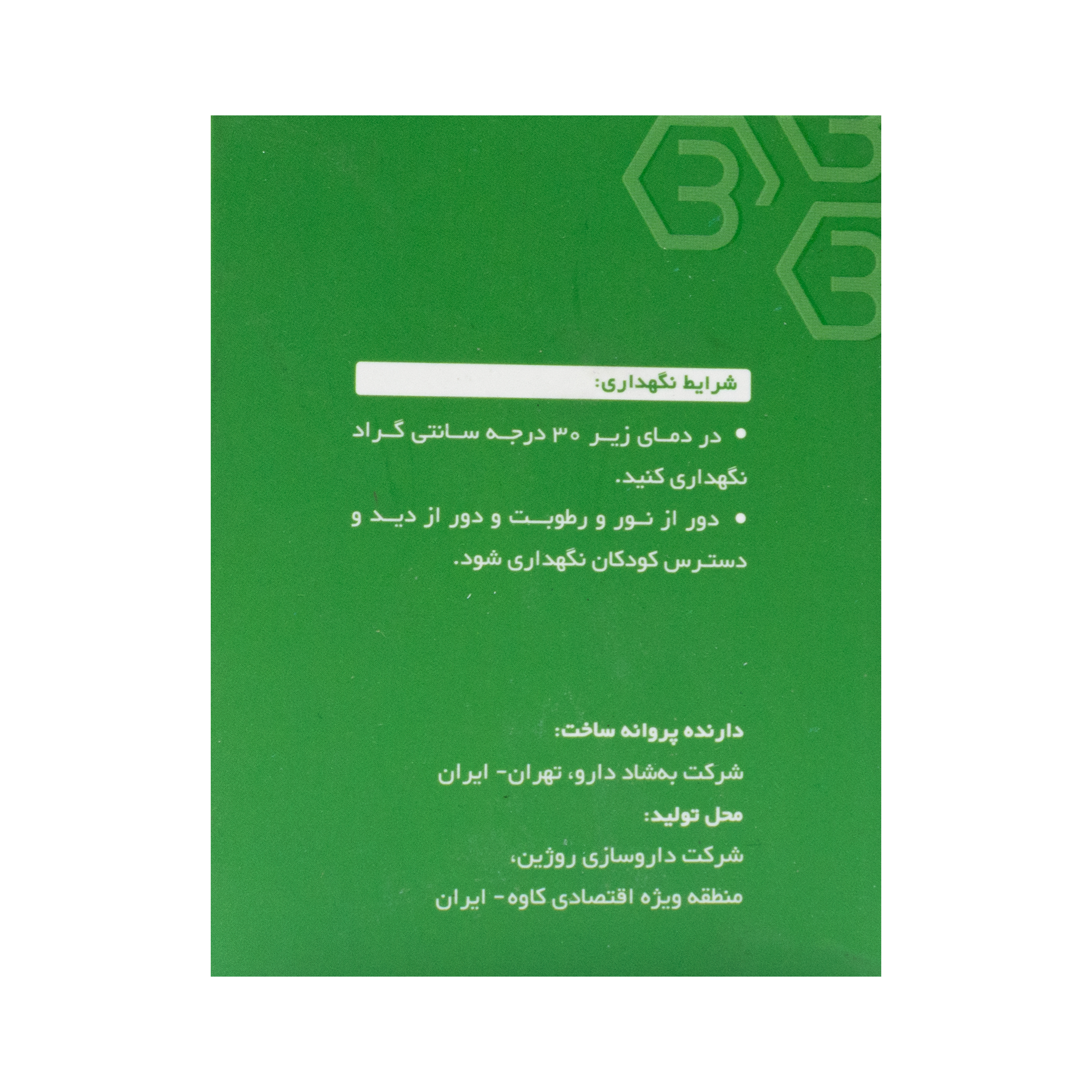محل تولید: داروسازی روژین- منطقه اقتصادی کاوه -ایران
