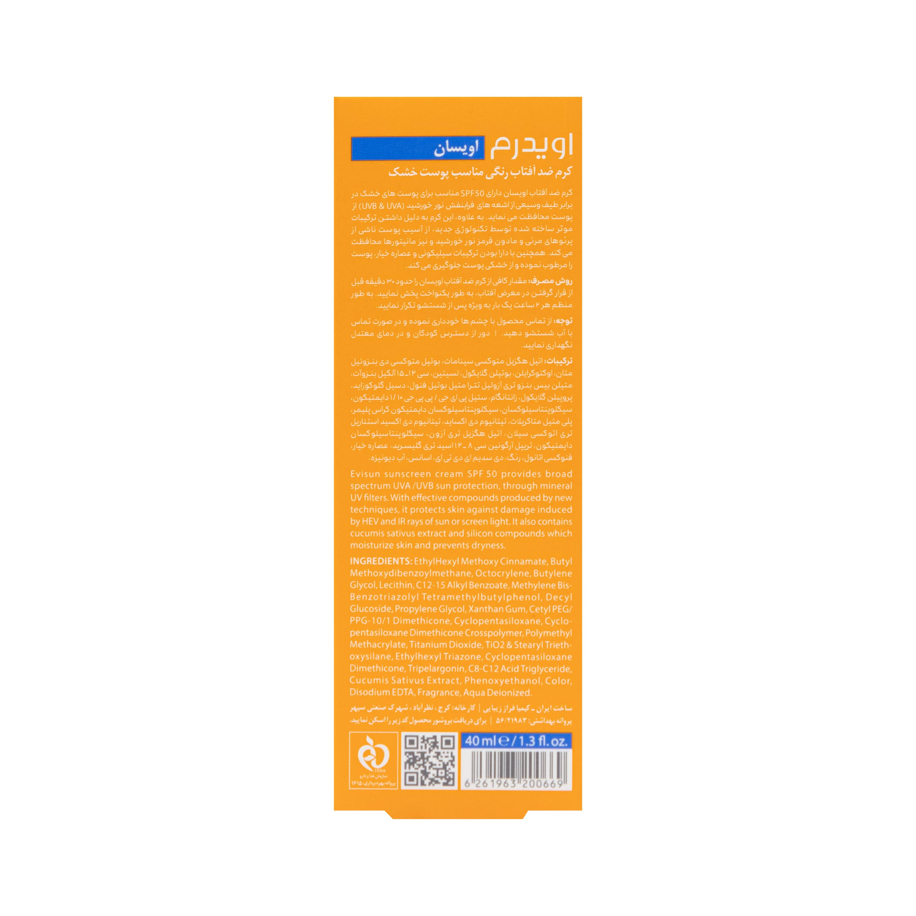 کرم ضد آفتاب اویسان دارای SPF50 مناسب برای پوست های خشک در برابر طیف وسیعی از اشعه های فرابنفش نور خورشید ( UVB & UVA) از پوست محافظت می نماید به علاوه بافت این کرم بسیار سبک و زود جذب می باشد و هیچگونه احساس سنگینی روی پوست ایجاد نمی کند. همچنین با دارا بودن عصاره خیار پوست را مرطوب نموده و از خشکی پوست جلوگیری می کند.