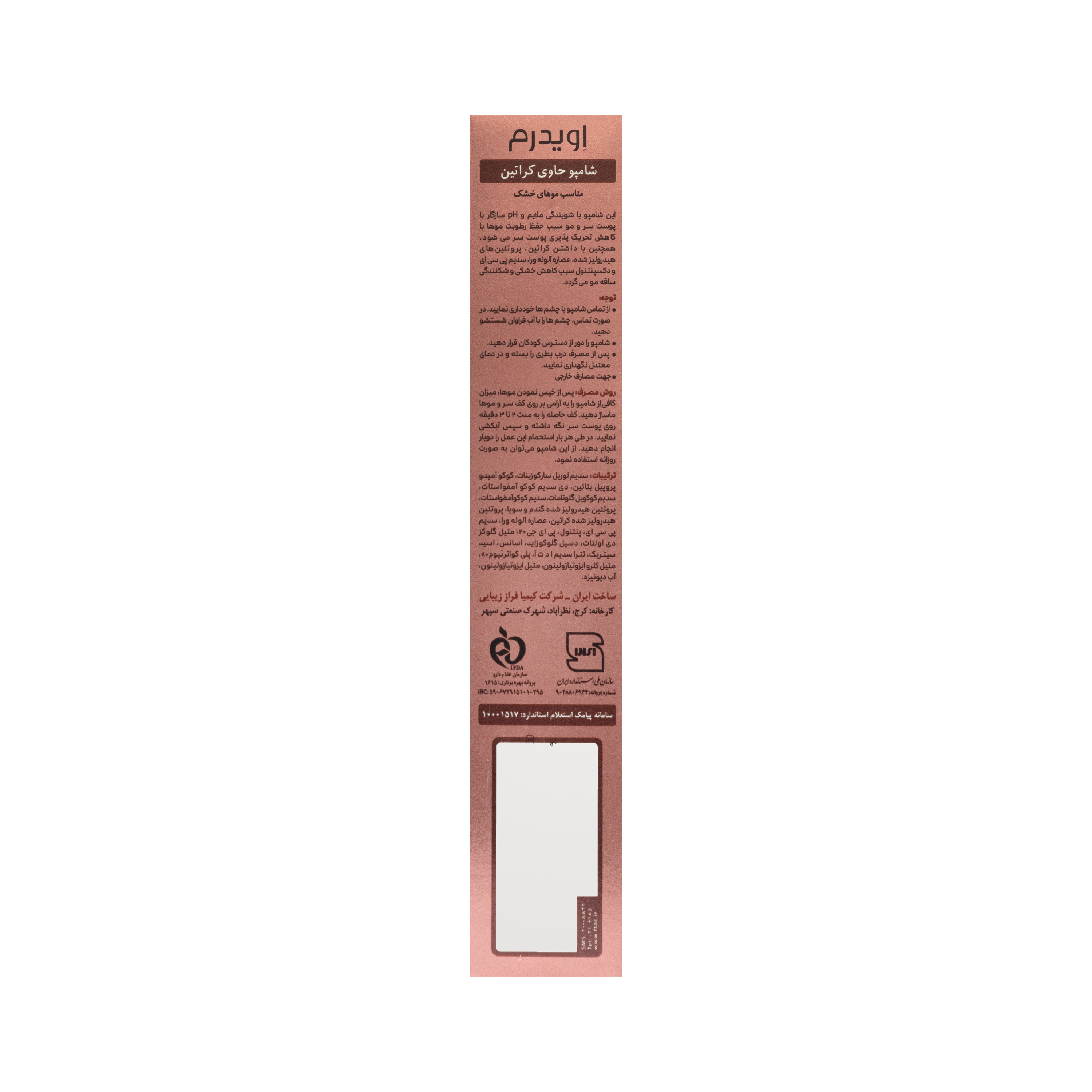 شامپو کراتینه فاقد سولفات موهای خشک اویدرم