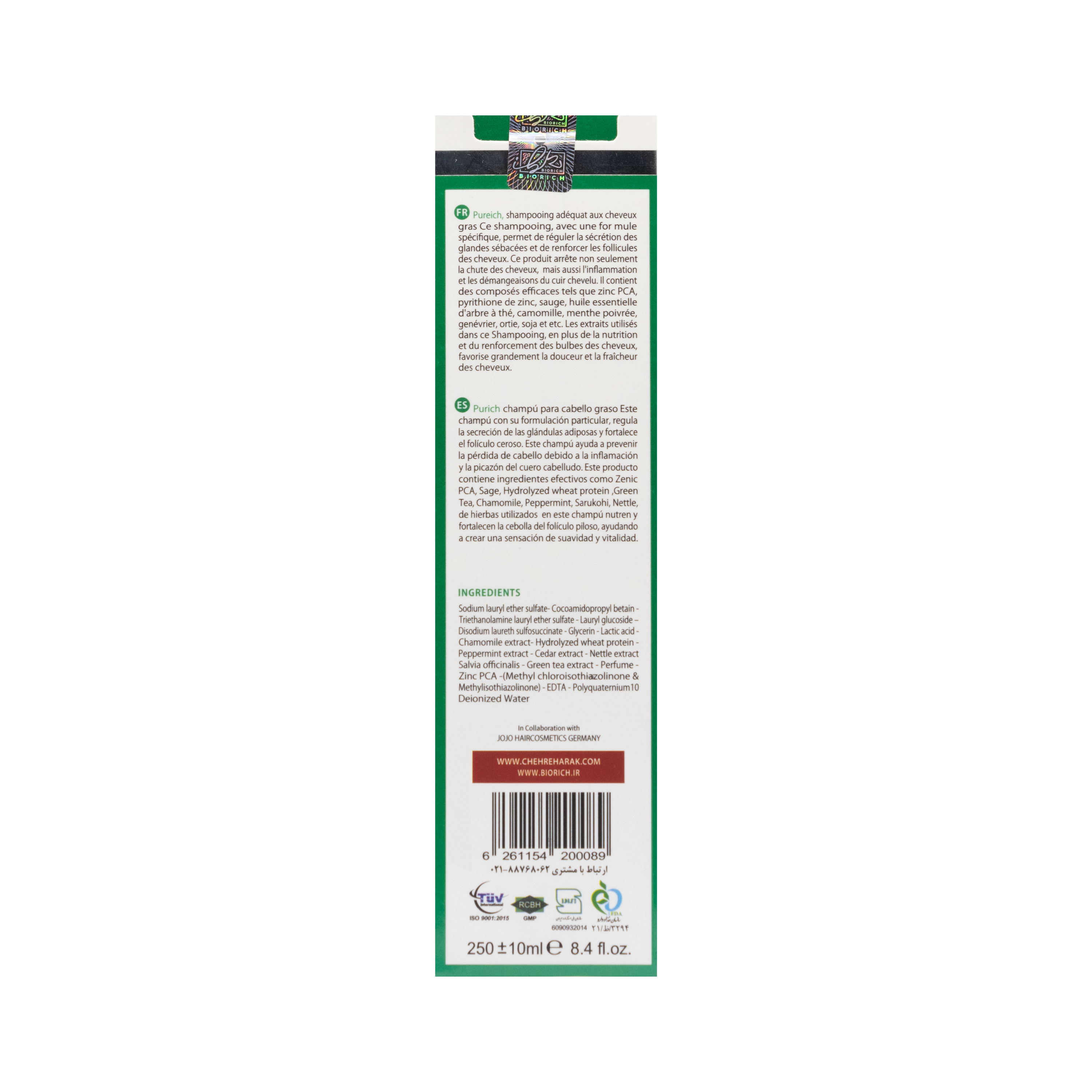شامپو پیوریج با دارا بودن فرمولاسیونی اختصاصی، موجب تنظیم ترشح غدد چربی و تقویت فولیکول مو می شود. این شامپو ضمن جلوگیری از ریزش موها از التهاب و خارش پوست سر جلوگیری می کند. این محصول حاوی مواد موثره ای مانند زنیک پی سی مریم گلی، عصاره درخت چای بابونه، نعنا فلفلی، پروتئین هیدرولیز شده گندم، سرو کوهی، گزنه و غیره می باشد. عصاره های گیاهی به کار رفته در این شامپو ضمن تغذیه و تقویت پیاز و ساقه موها کمک شایانی به ایجاد حس لطافت و شادابی موها می کند.
