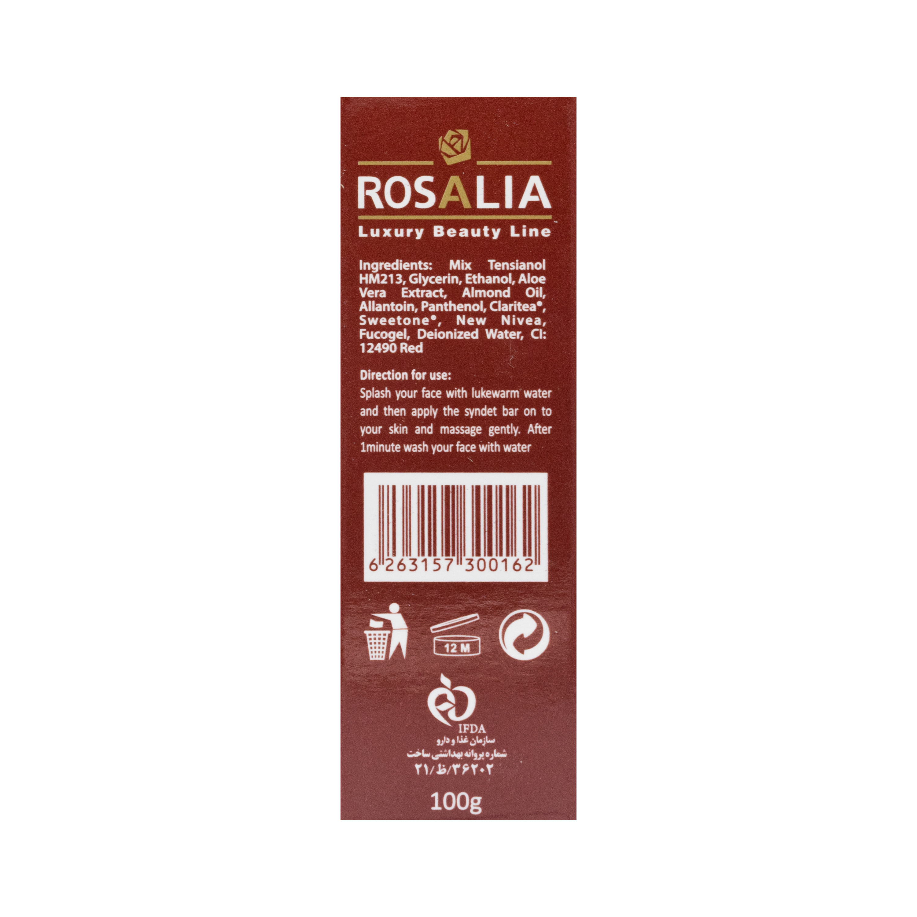 - پس از مرطوب نمودن پوست با آب ولرم، شوینده رزاسنس را روی نواحی مورد نظر مالیده تا کف ایجاد گردد.