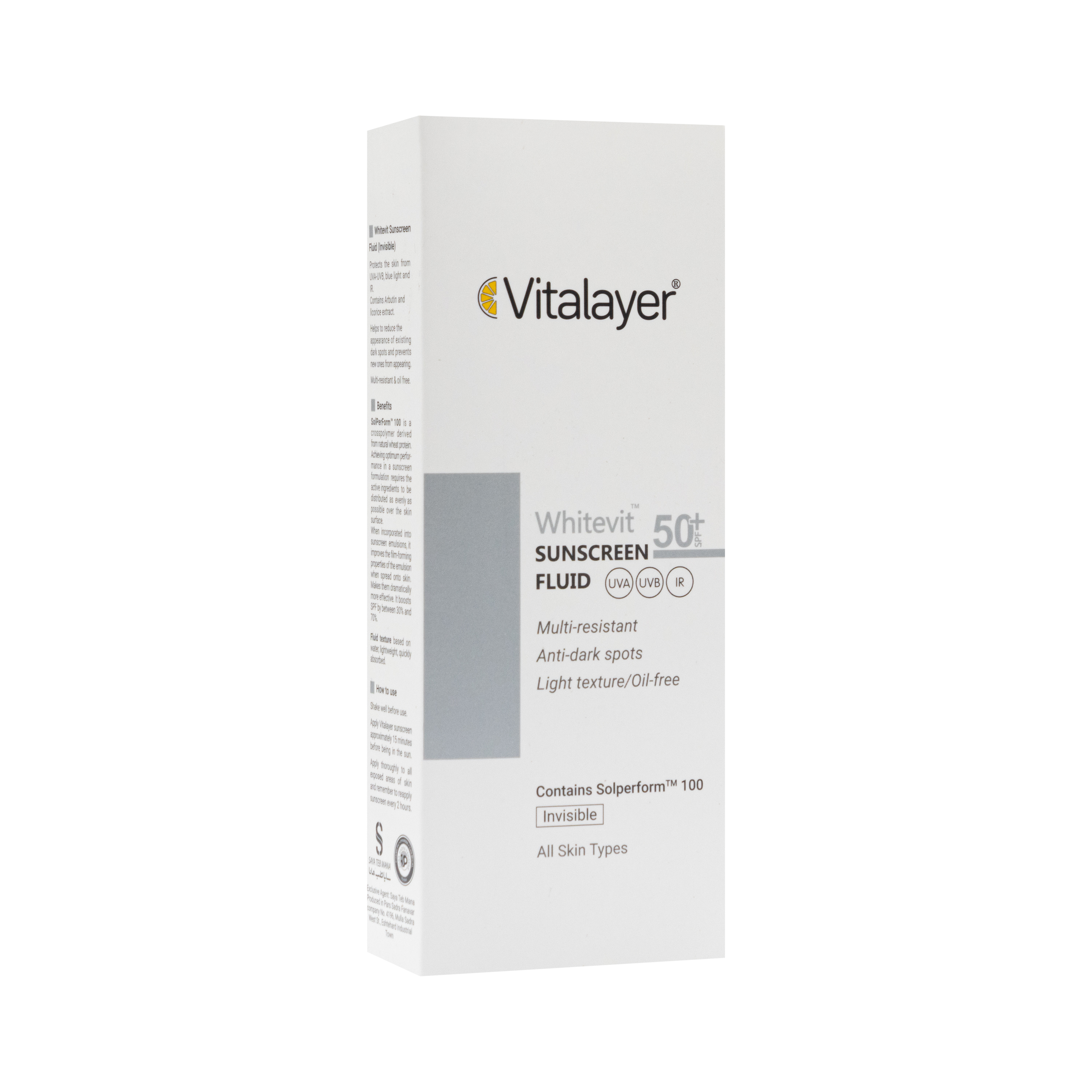 فلوئید ضد آفتاب پوست دارای لک وایت ویت ویتالیر (بی رنگ) مناسب پوست های کدر و دارای لک