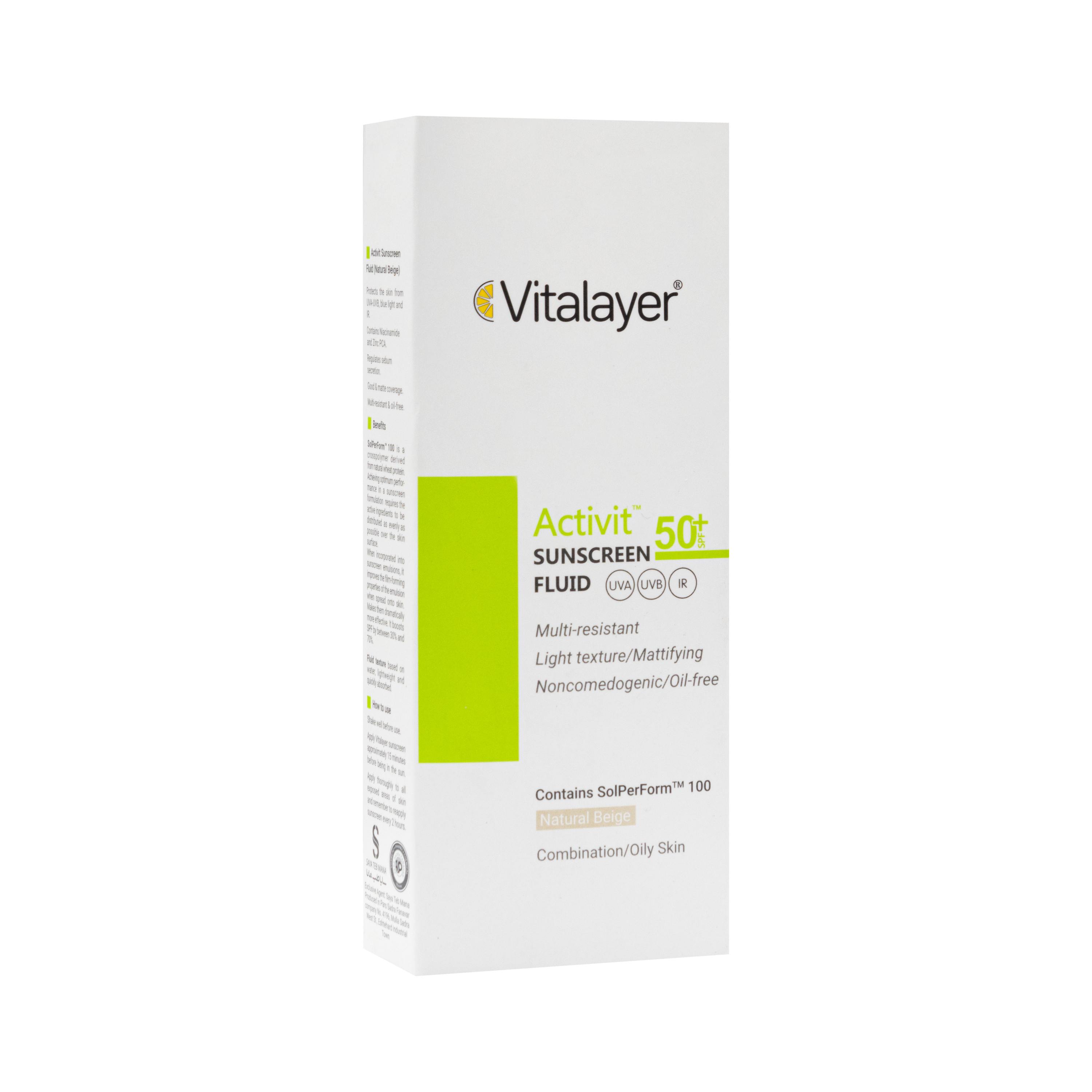 فلوئید ضد آفتاب پوست چرب +SPF50 بژ طبیعی اکتی ویت ویتالیر