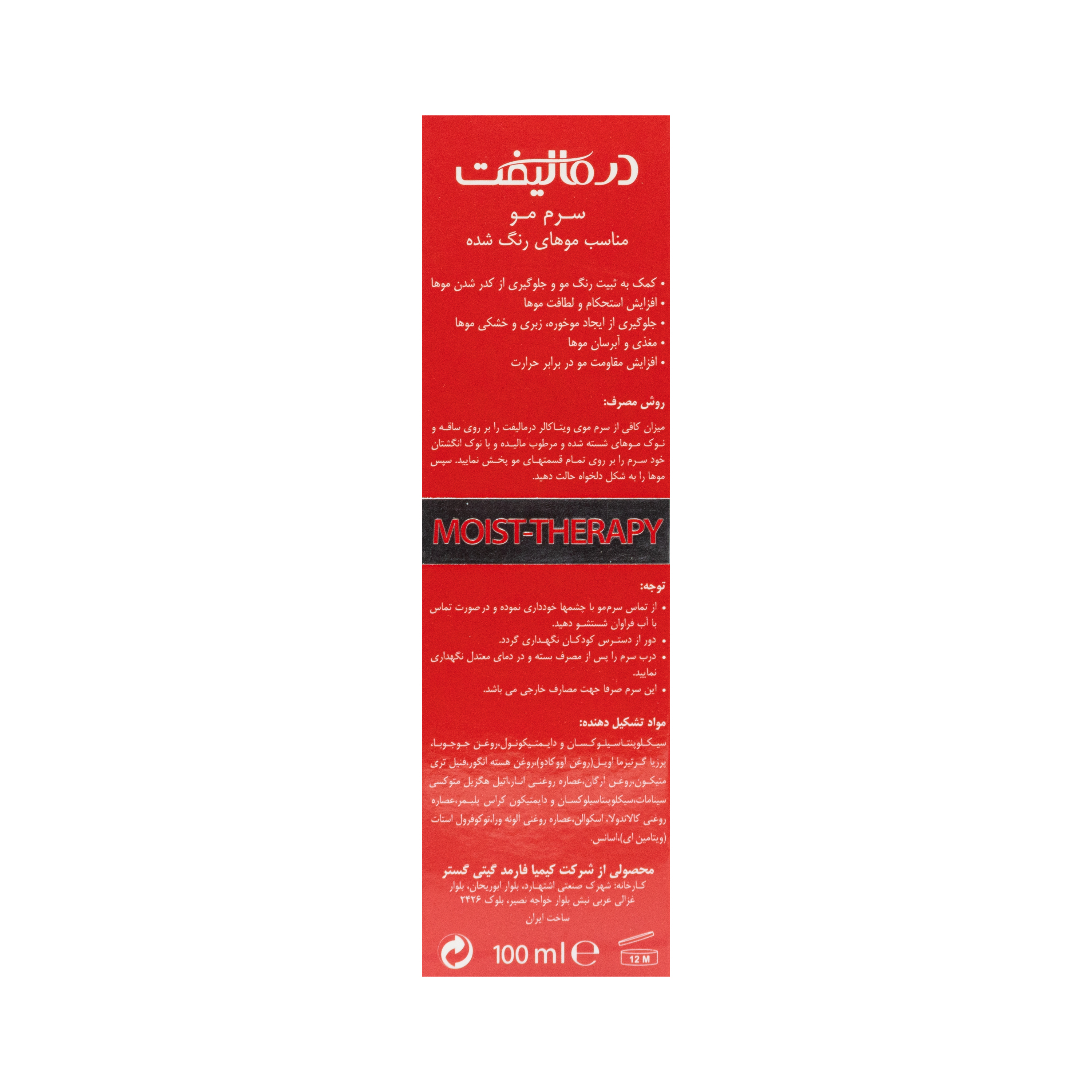 از تماس سرم مو با چشم ها خودداری نموده و در صورت تماس با آب فراوان شستشو دهید.