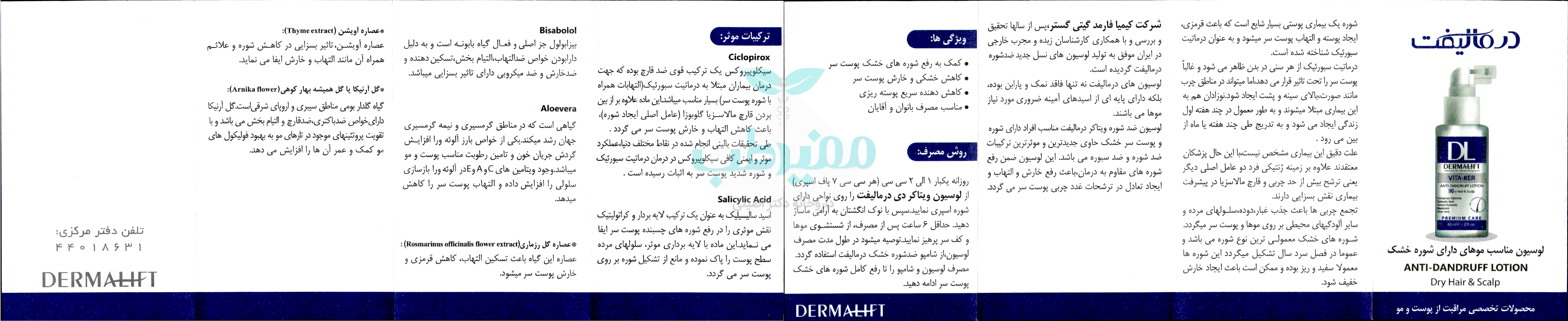 - توصیه می شود در طول مدت مصرف لوسیون، از شامپو ضدشوره خشک درمالیفت استفاده گردد.