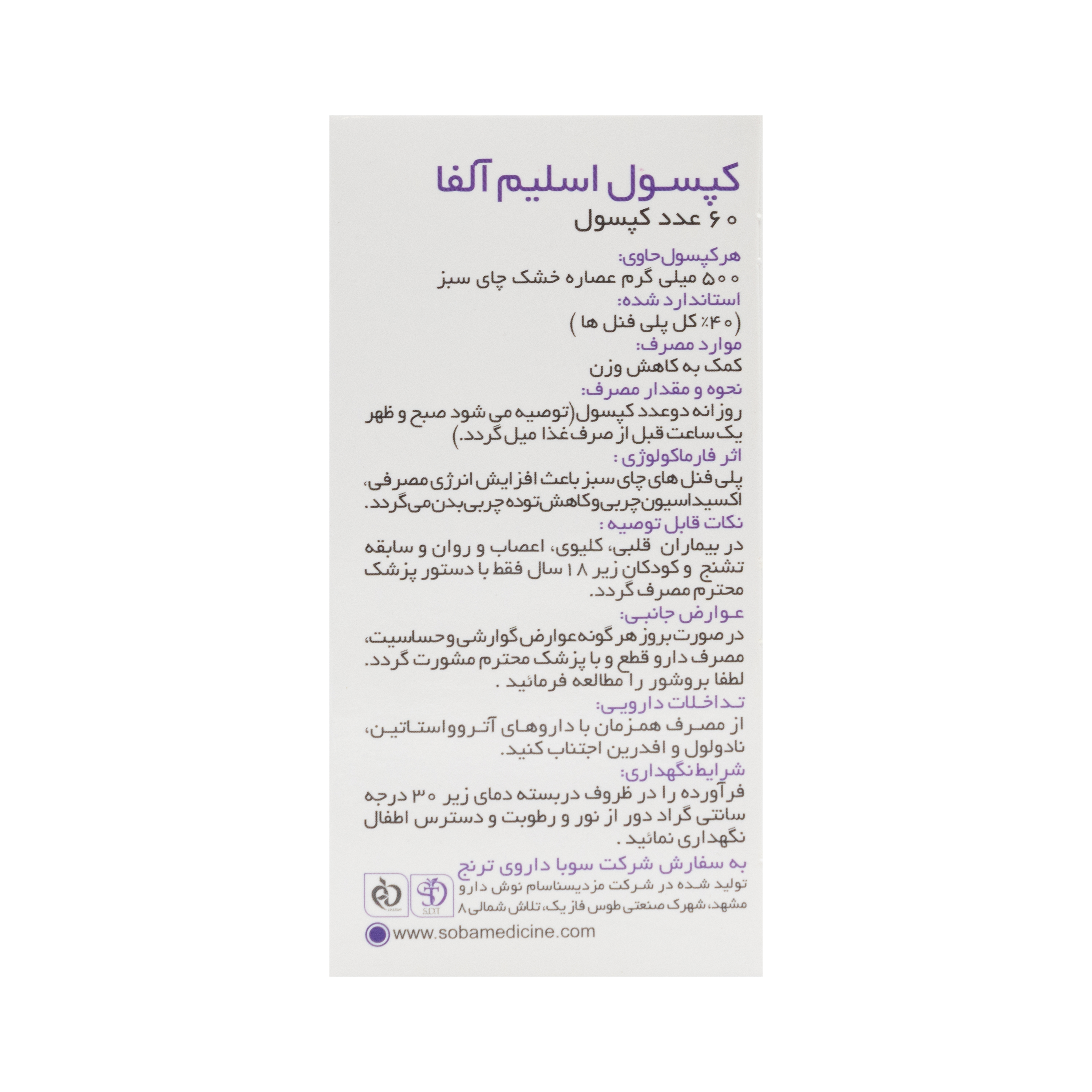 کپسول اسلیم آلفا سوبا داروی ترنج