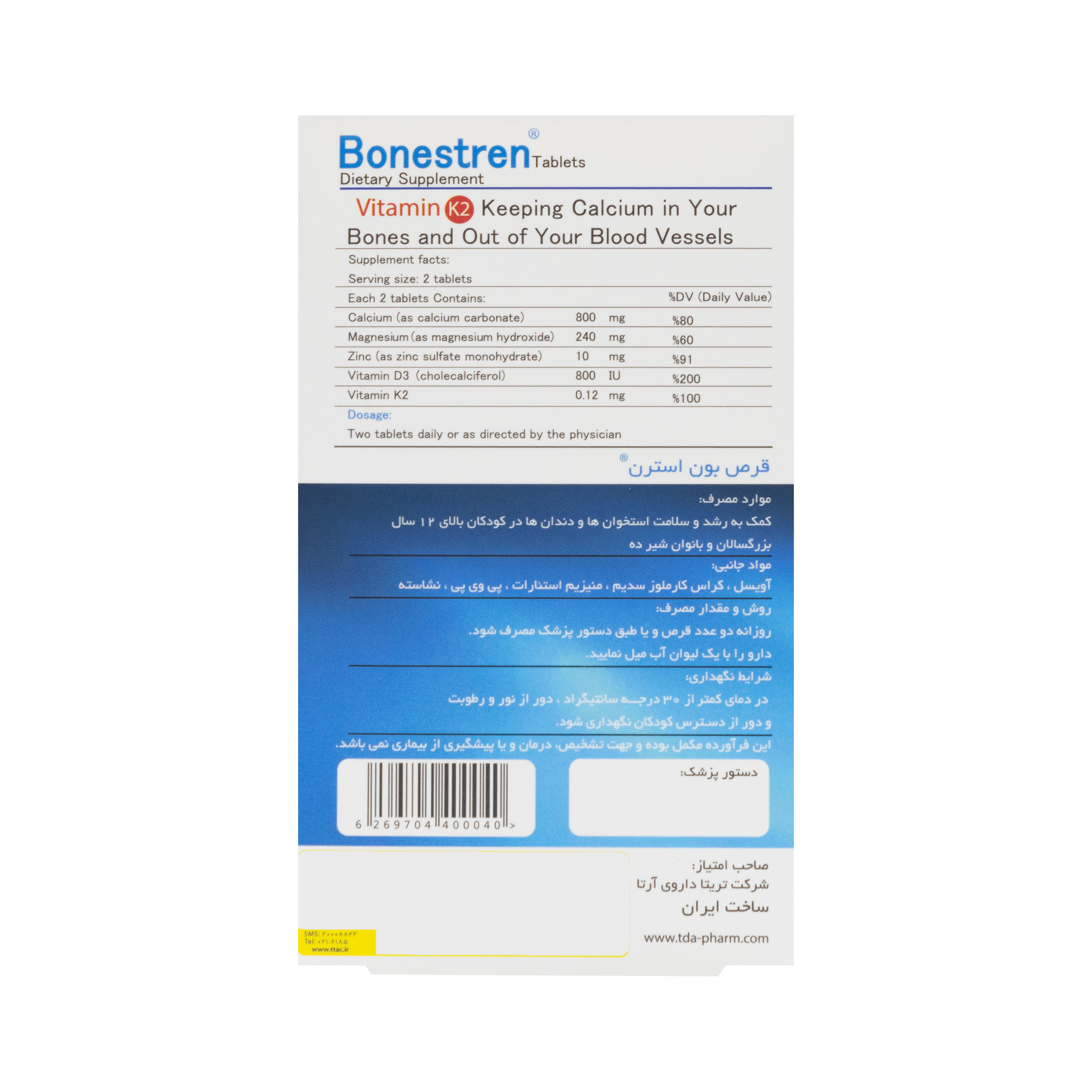 - حاوی کلسیم، منیزیم، روی، ویتامین D3 و ویتامین K2