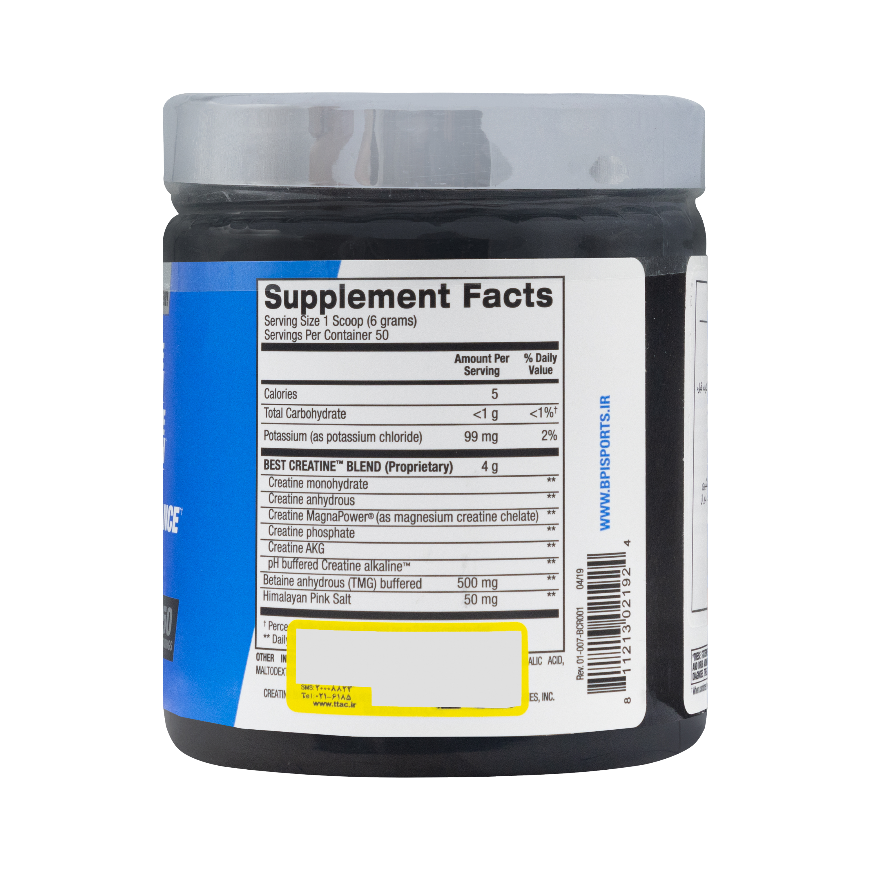 حاوی کراتین (این محصول دارای ترکیبی از انواع مختلف کراتین از جمله کراتین مونوهیدرات، کراتین مگنا پاور (کراتین کلات منیزیم)، کراتین AKG، کراتین فسفات، کراتین آلکالین و کراتین بدون آب می باشد).