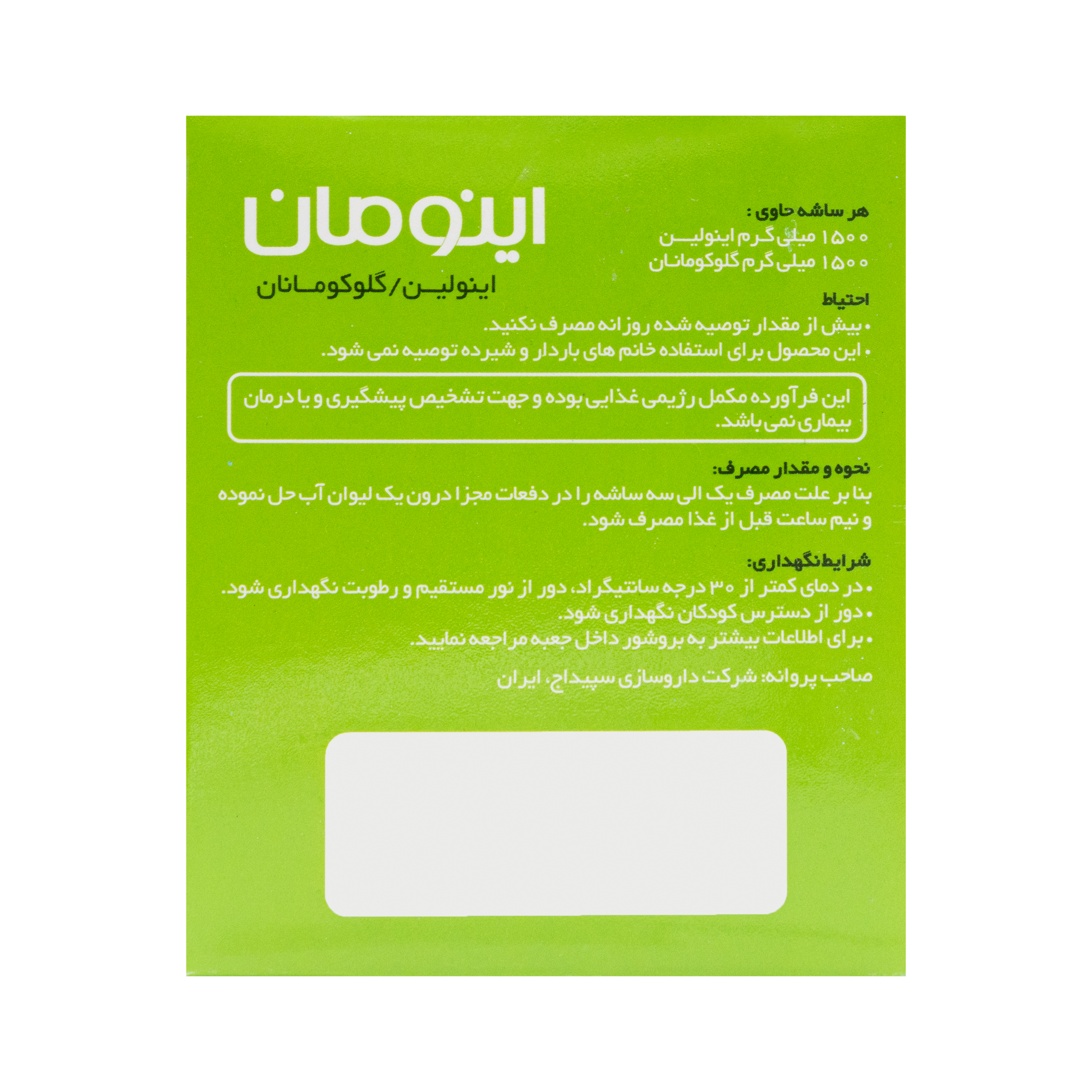 - حاوی 1500 میلی گرم اینولین و 1500 میلی گرم گلوکومانان