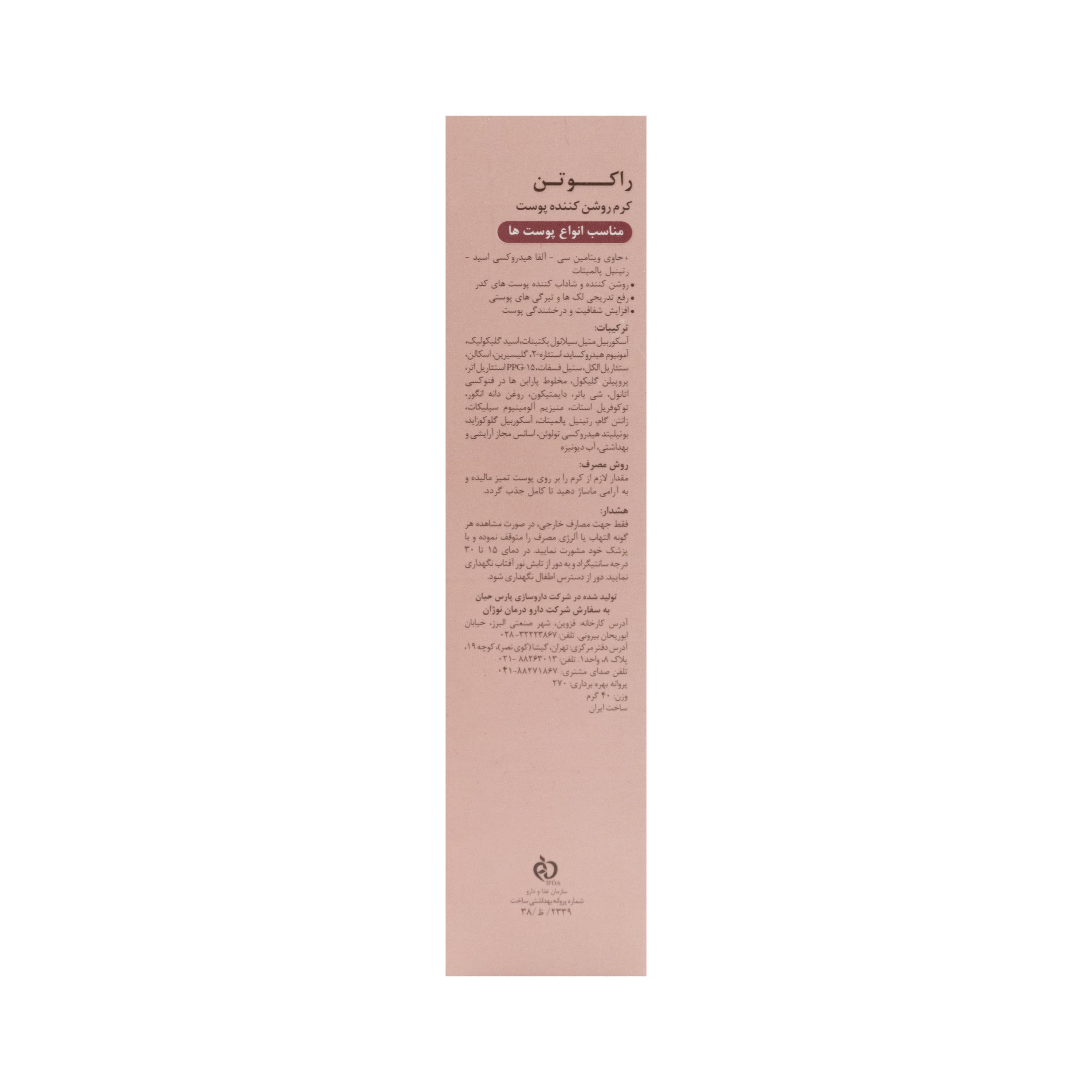 کرم روشن کننده راکوتن حس لمس شادابی و طراوتی لوکس با خاصیت روشن کنندگی بالا را به شما می دهد که دارای فرمولاسیونی قدرتمند و کاملا موثر می باشد.
