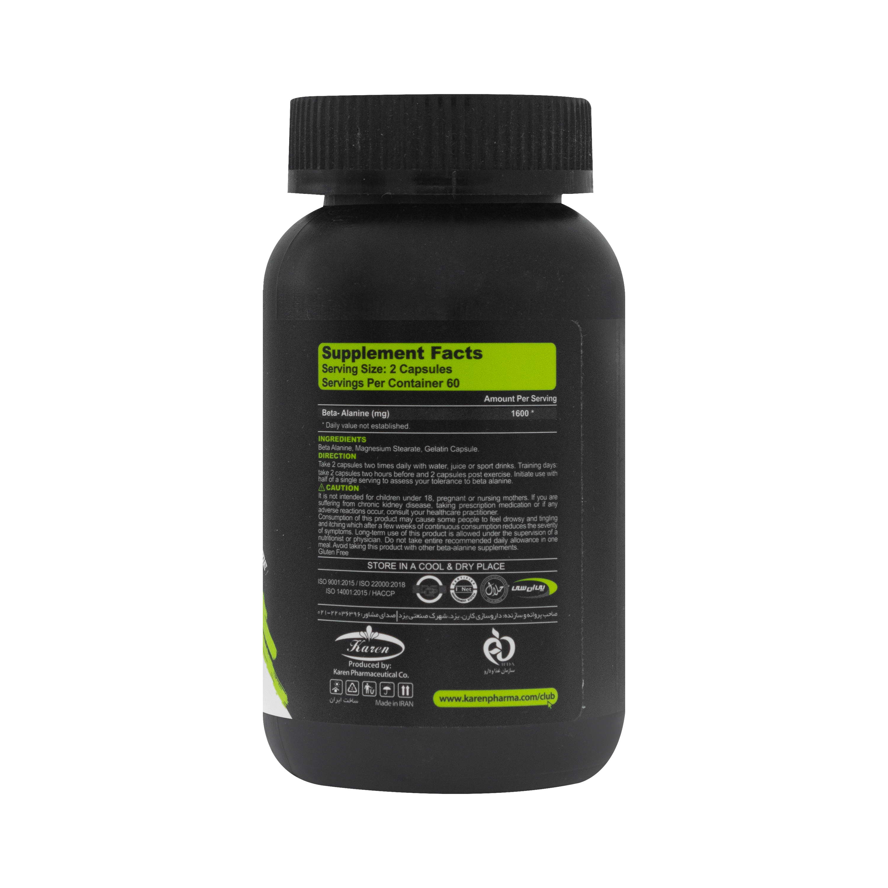 حاوی بتاآلانین، استئارات منیزیم و کپسول ژلاتینی