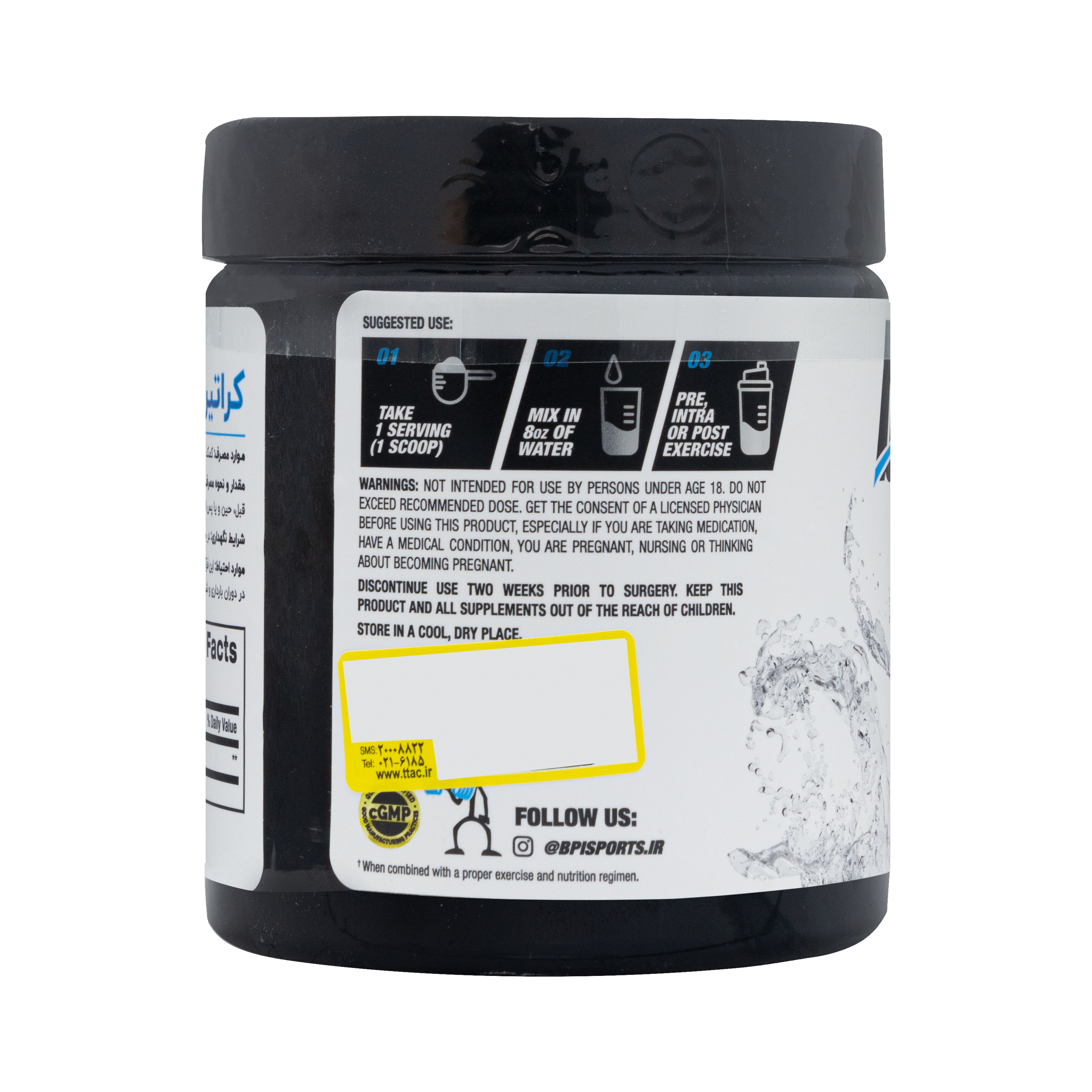 یک پیمانه از محصول را با 230 سی سی آب مخلوط کرده، قبل، حین و یا بعد از تمرین میل نمایید.